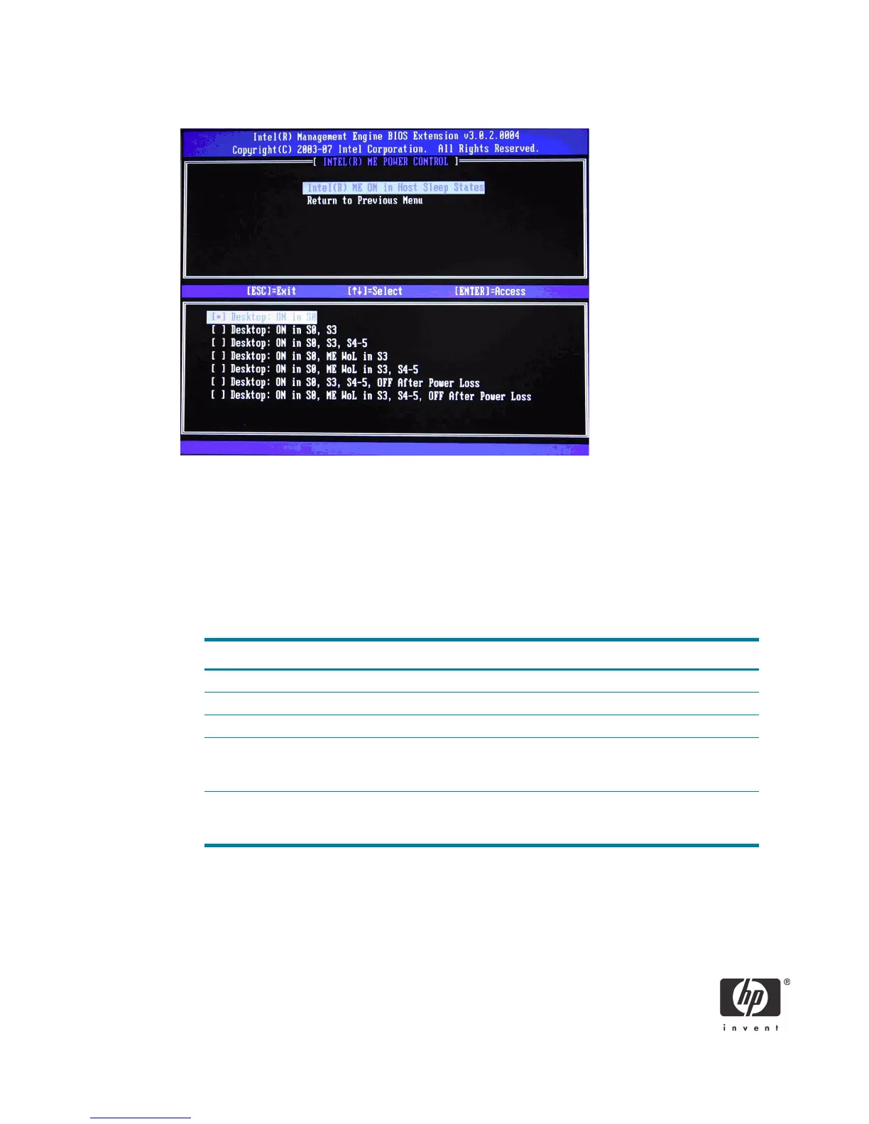 a. Select Intel ME ON in Host Sleep States, and then select Desktop:ON in S0, S3, ME