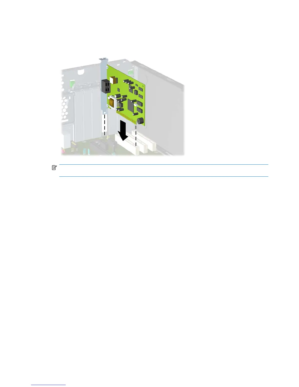 NOTE: When installing an expansion card, press firmly on the card so that the whole connector