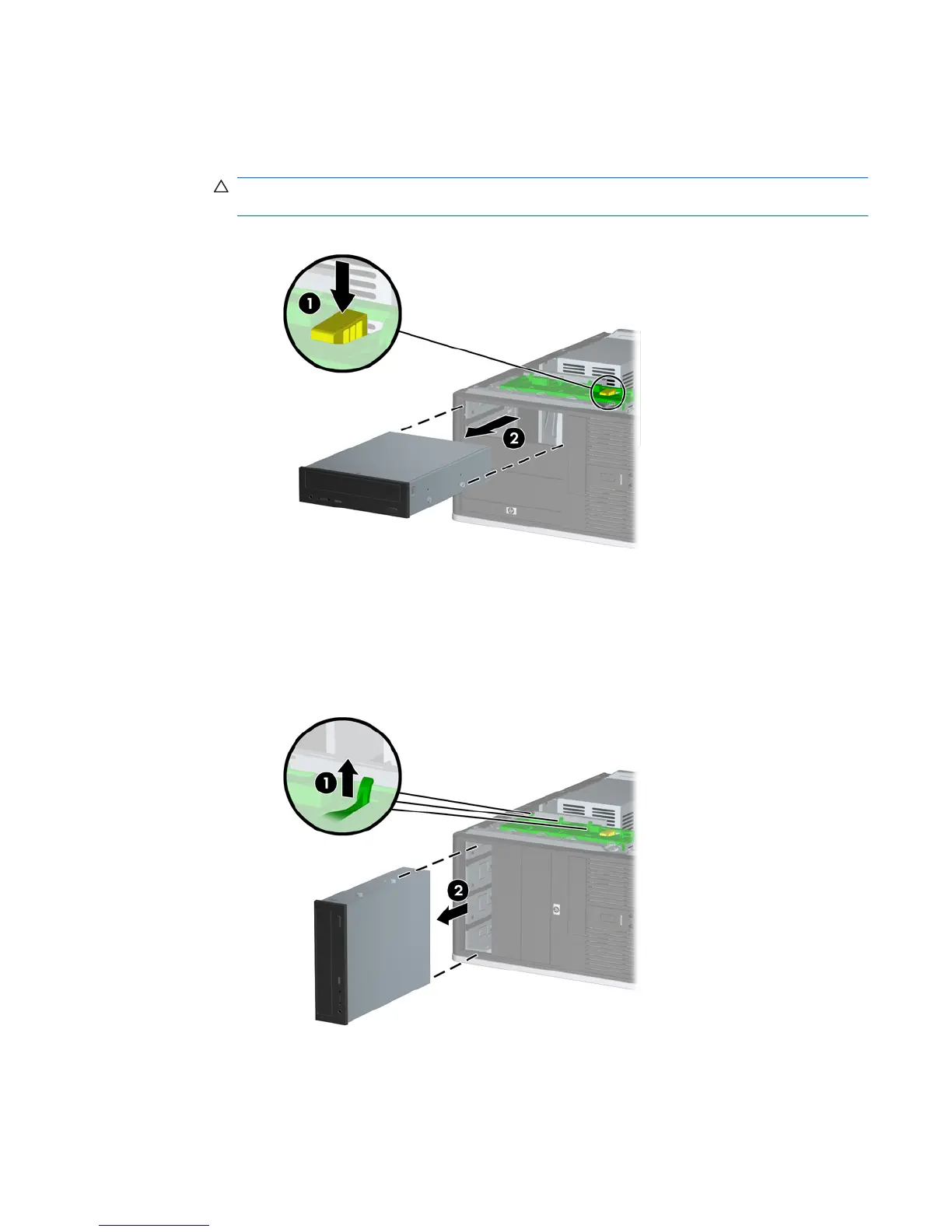 CAUTION: When the yellow drivelock is pressed, all the external 5.25-inch drives are