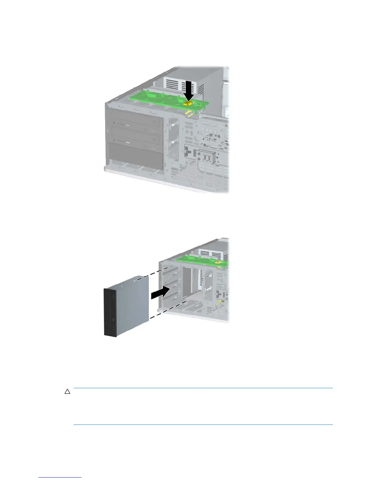 in depth. Do not try to force a larger drive, such as an optical drive, into the bottom bay. This could