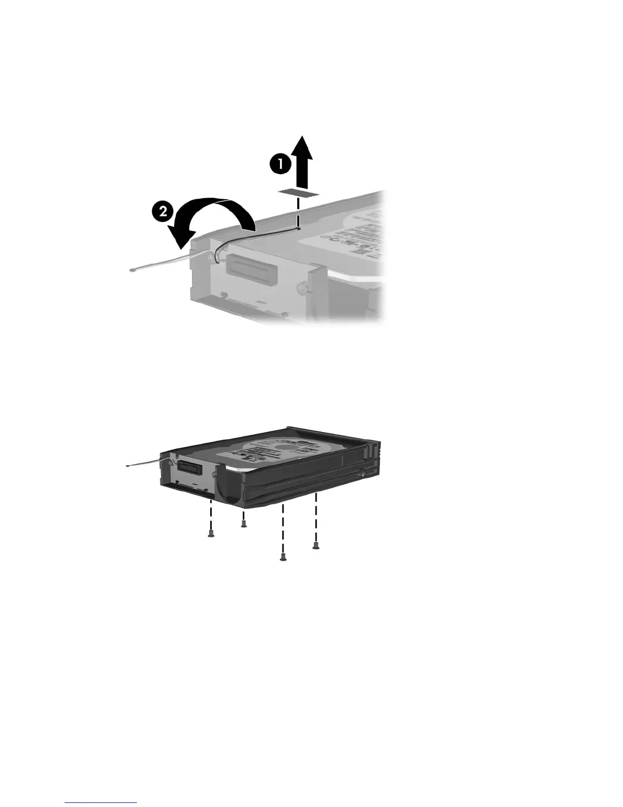 4. Remove the four screws from the bottom of the hard drive carrier.