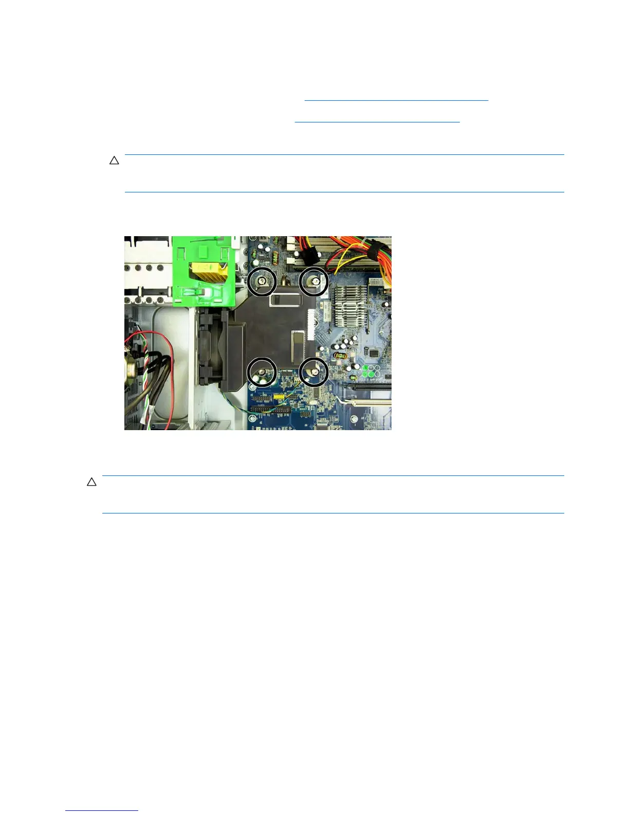 CAUTION: Heatsink retaining screws should be removed in diagonally opposite pairs (as in an