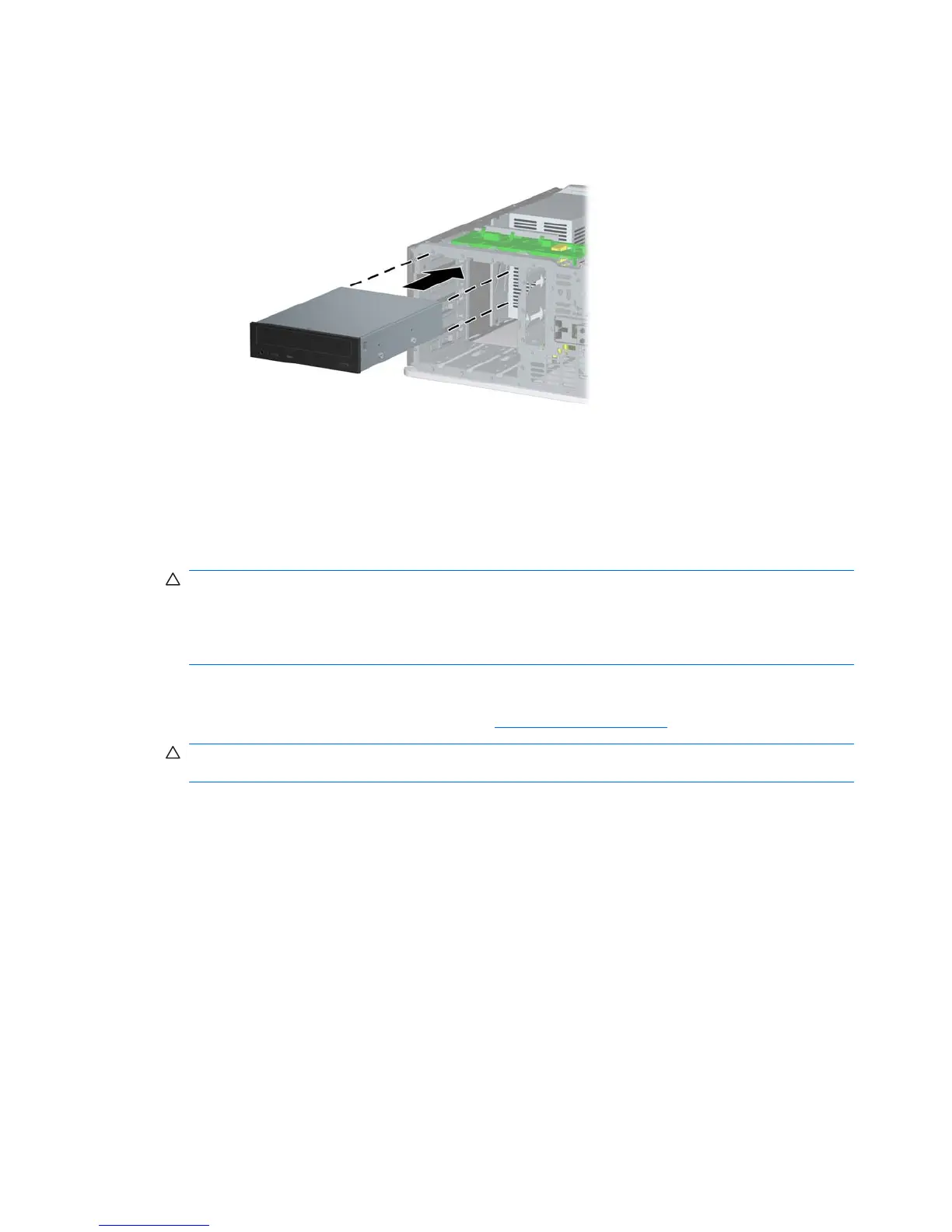 in depth. Do not try to force a larger drive, such as an optical drive, into the bottom bay. This could