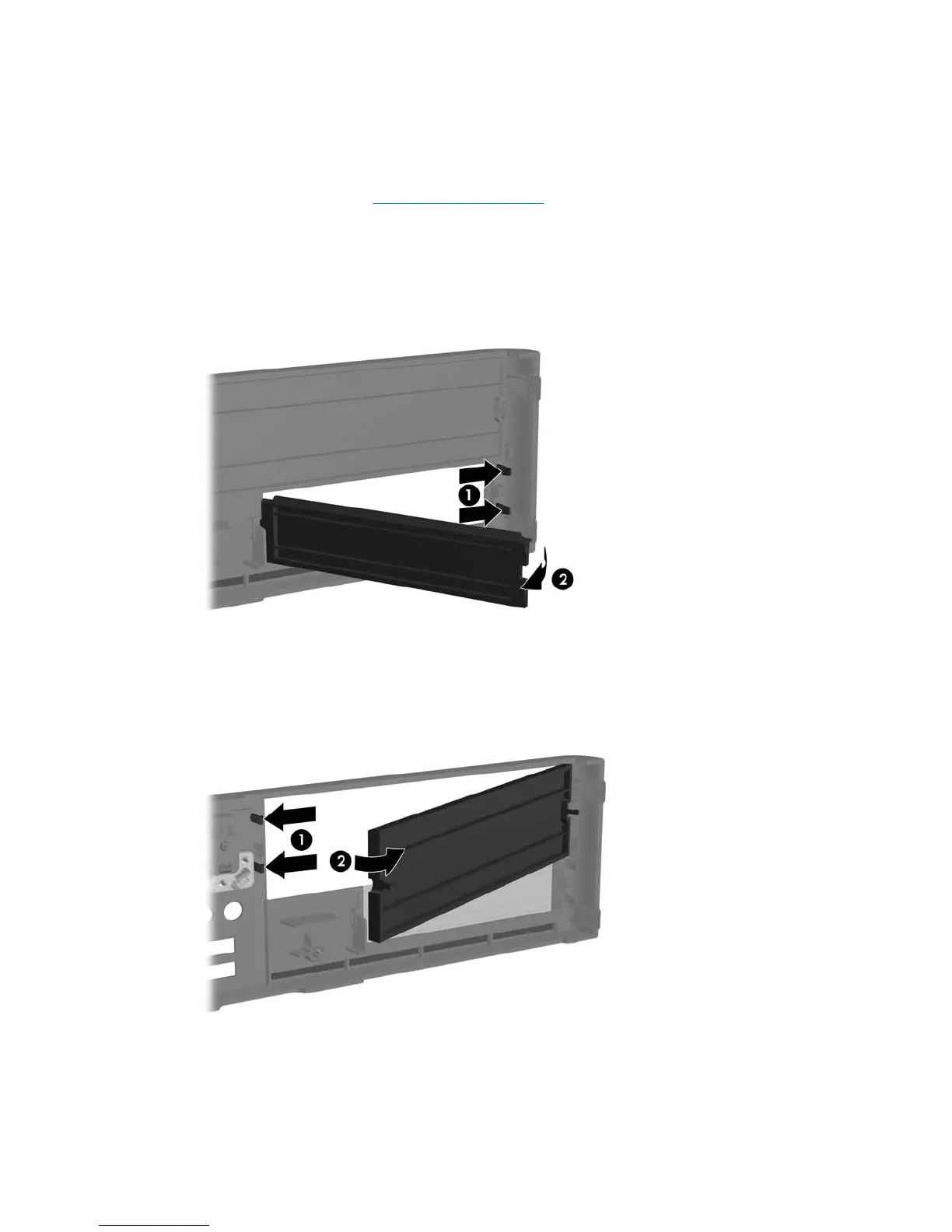 On some models, there are bezel blanks covering the 3.5-inch and 5.25-inch external drive bays that
