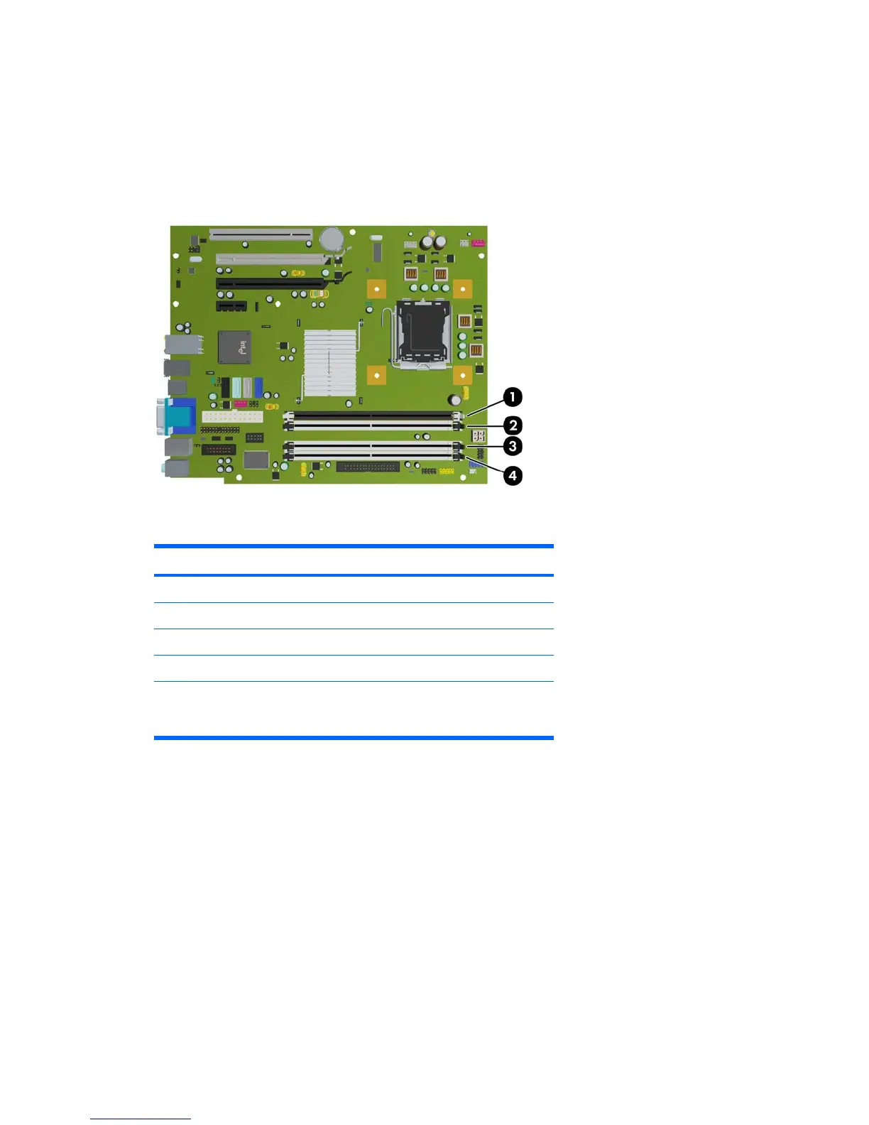 There are four DIMM sockets on the system board, with two sockets per channel. The sockets are