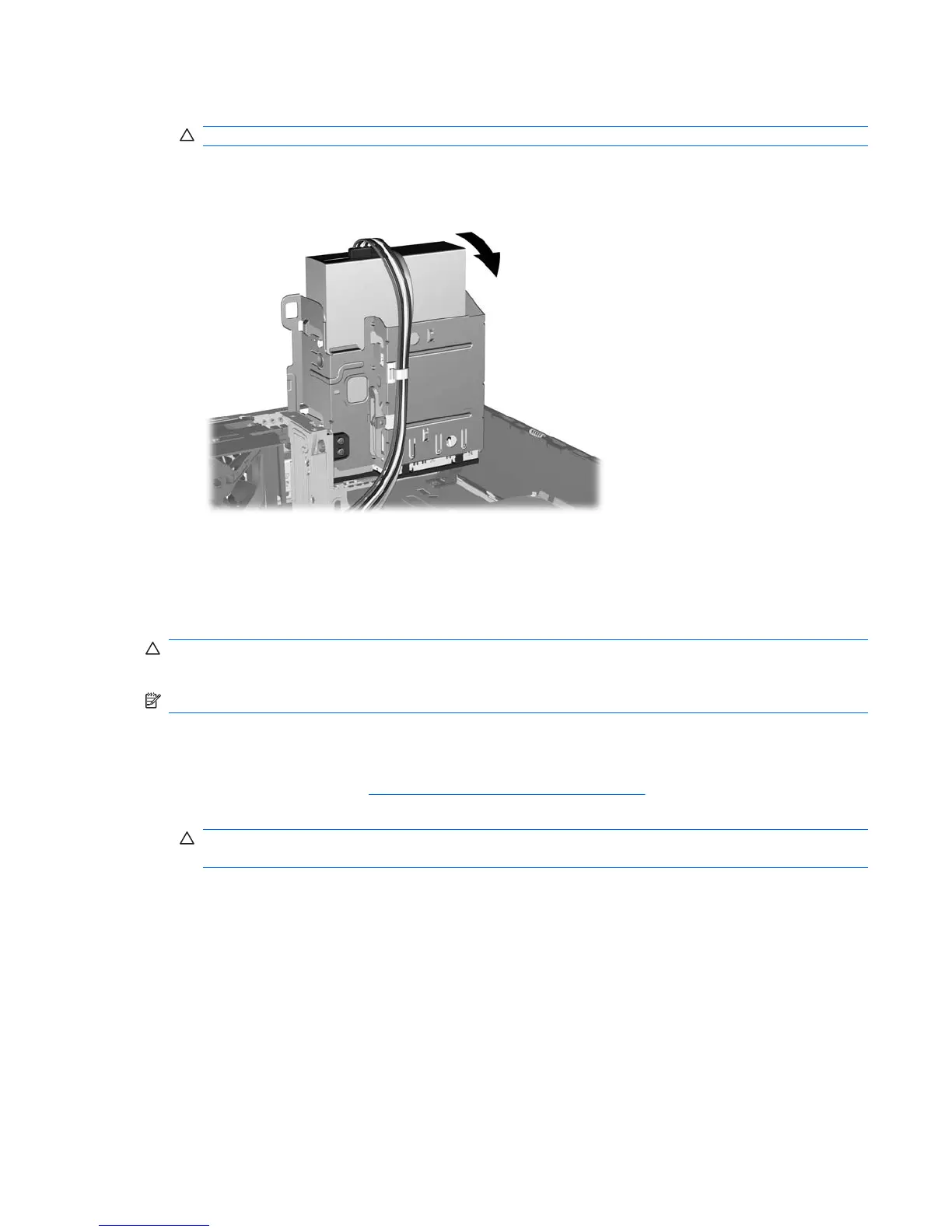 CAUTION: Be careful not to pinch any cables or wires when rotating the drive cage down.