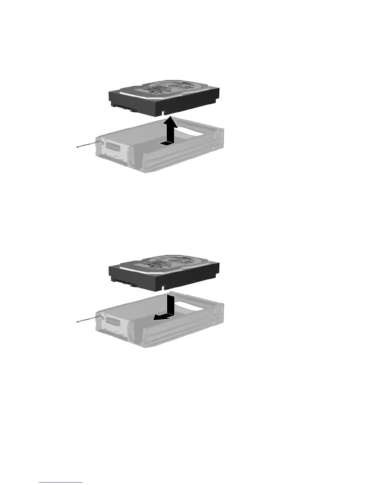 6. Place the new hard drive in the carrier then slide the hard drive back so that it seats in the SATA