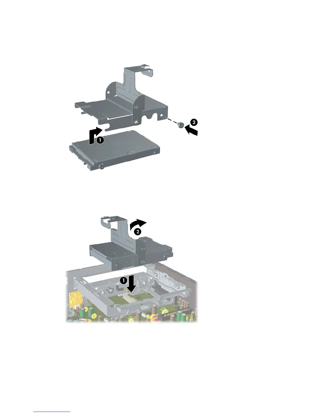 (1), then replace the guide screw on the front left of the carrier to secure the drive in the carrier