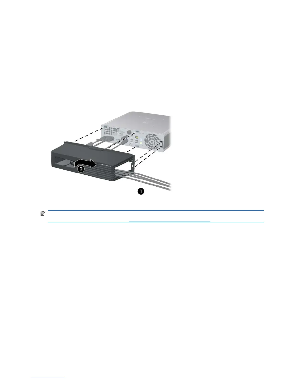 1. Thread the cables through the bottom hole on the port cover (1) and connect the cables to the rear