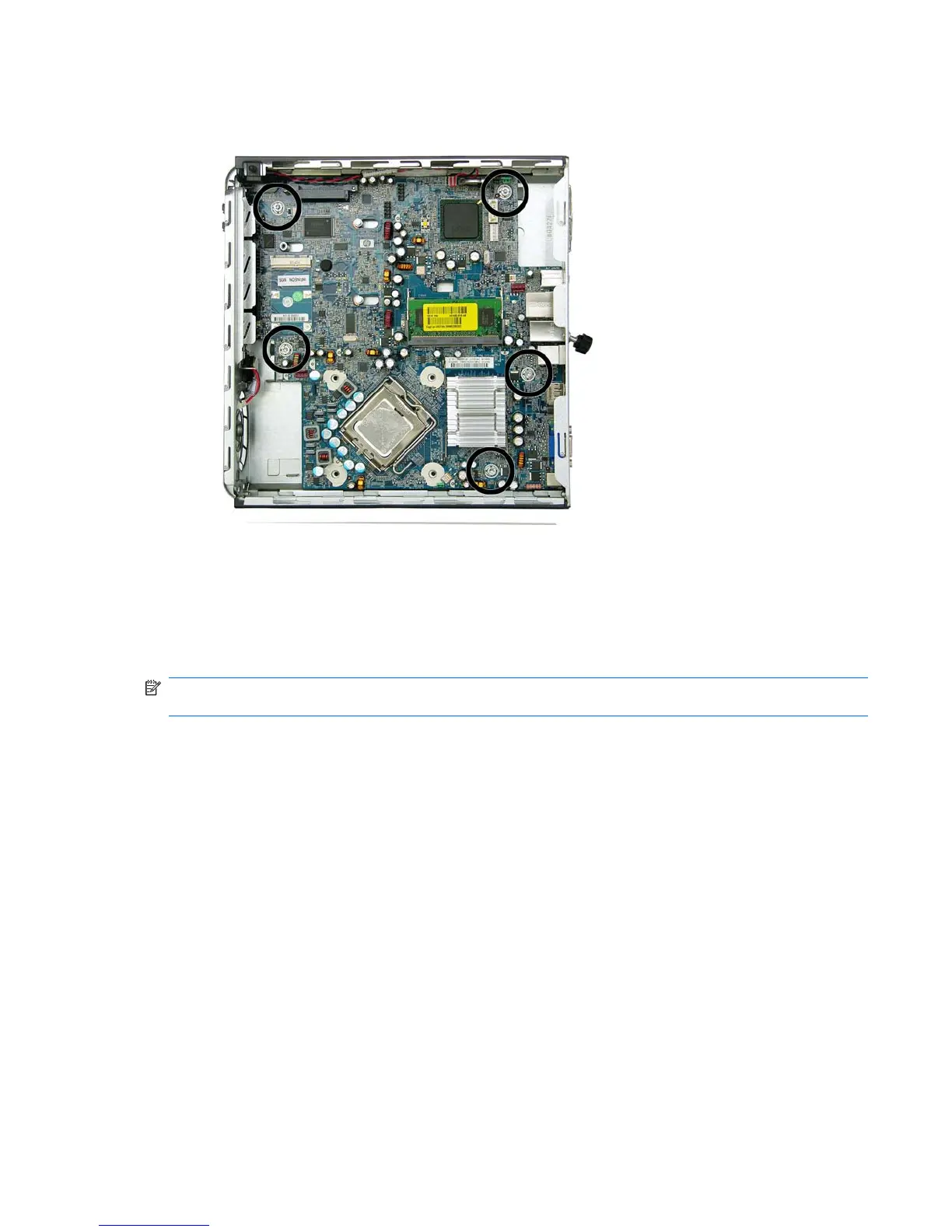 10. Remove the five remaining screws that secure the system board to the chassis.