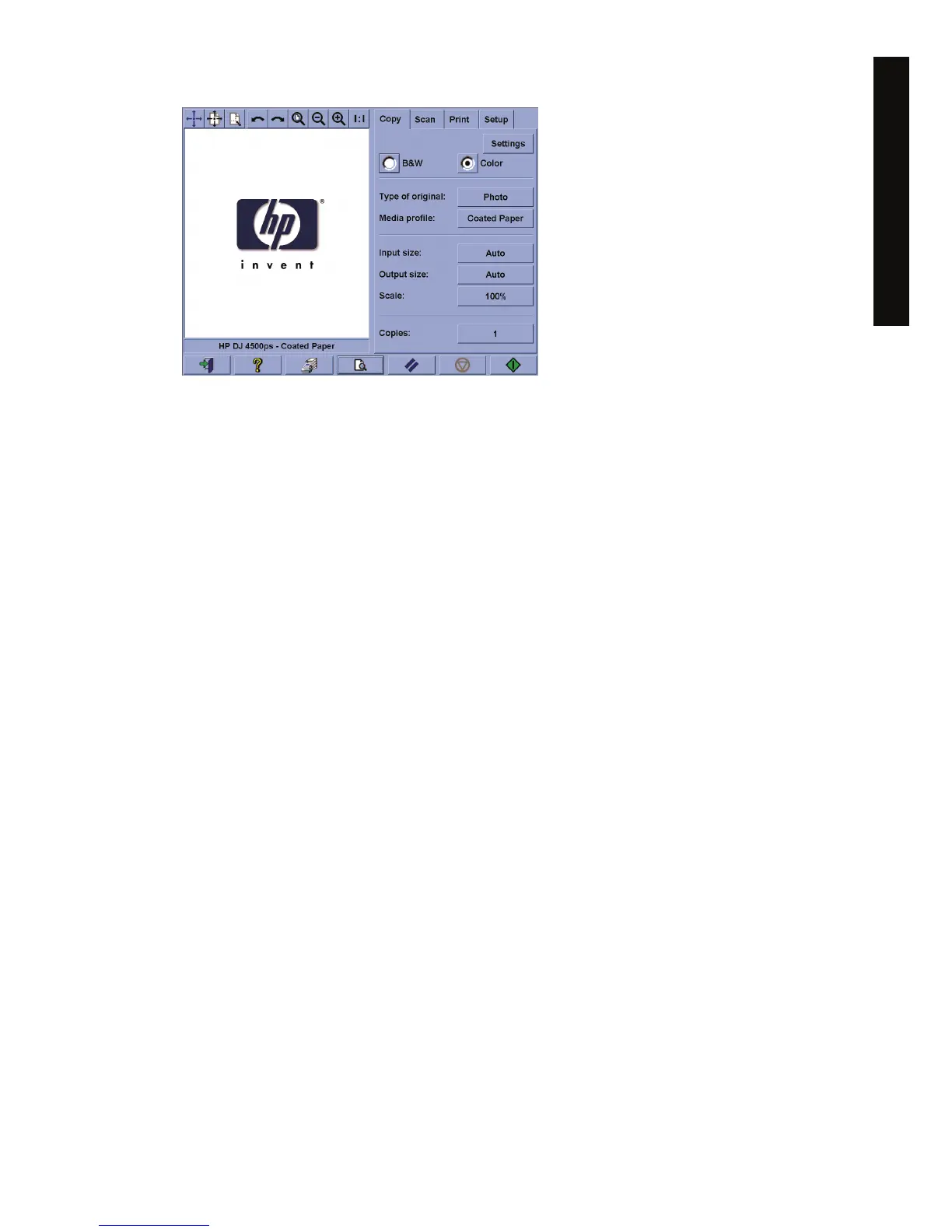 The control section contains four tabs: Copy, Scan, Print, and Setup. Each tab provides options that you