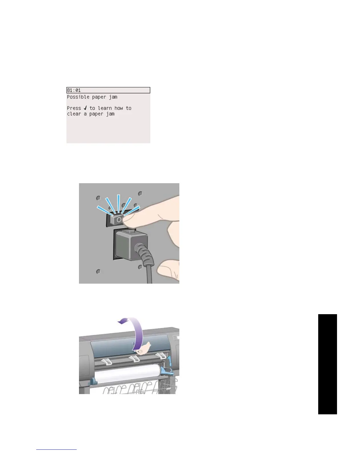 ● 86:01 indicates that the printhead carriage cannot move from side to side.