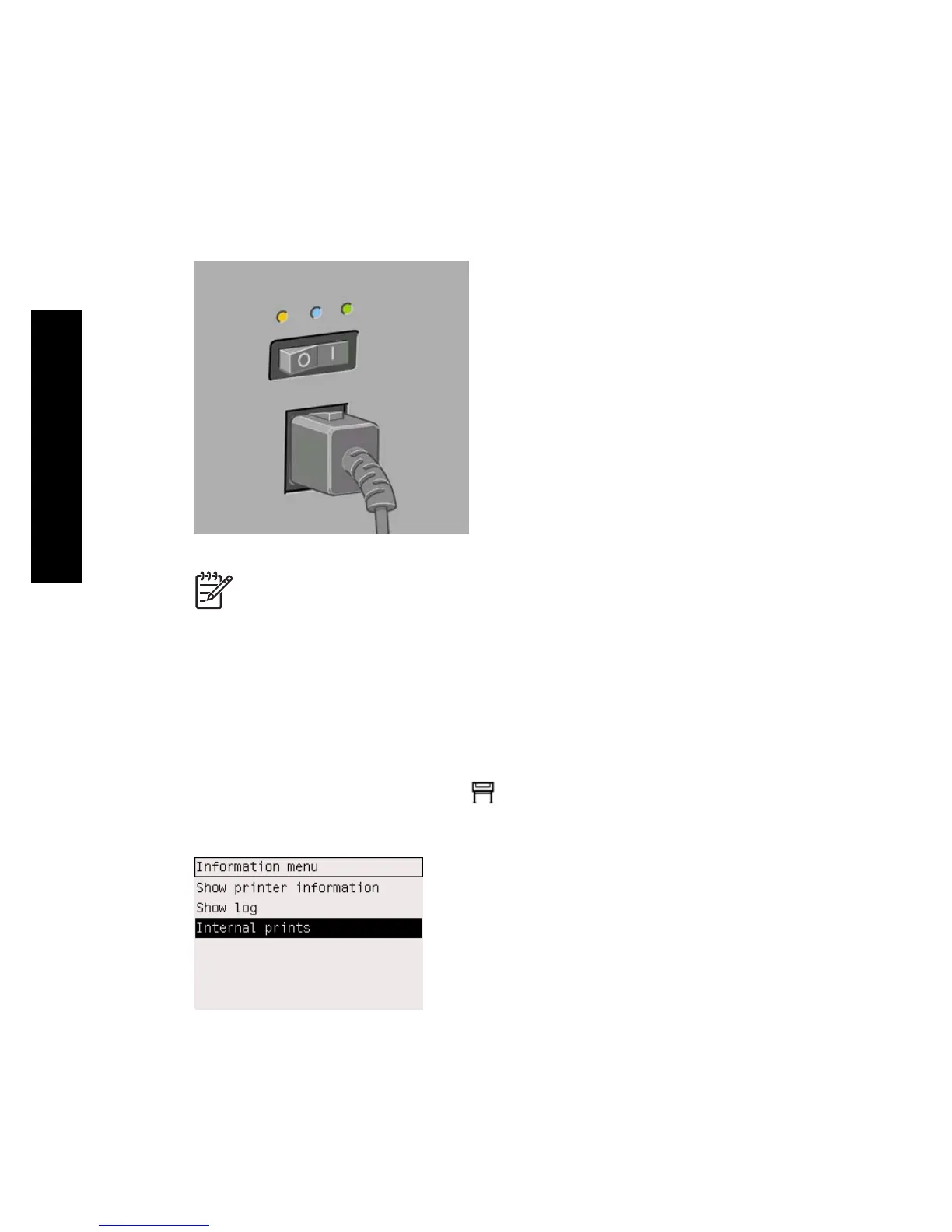 Before requesting any internal print, make sure that paper is loaded (roll or sheet),