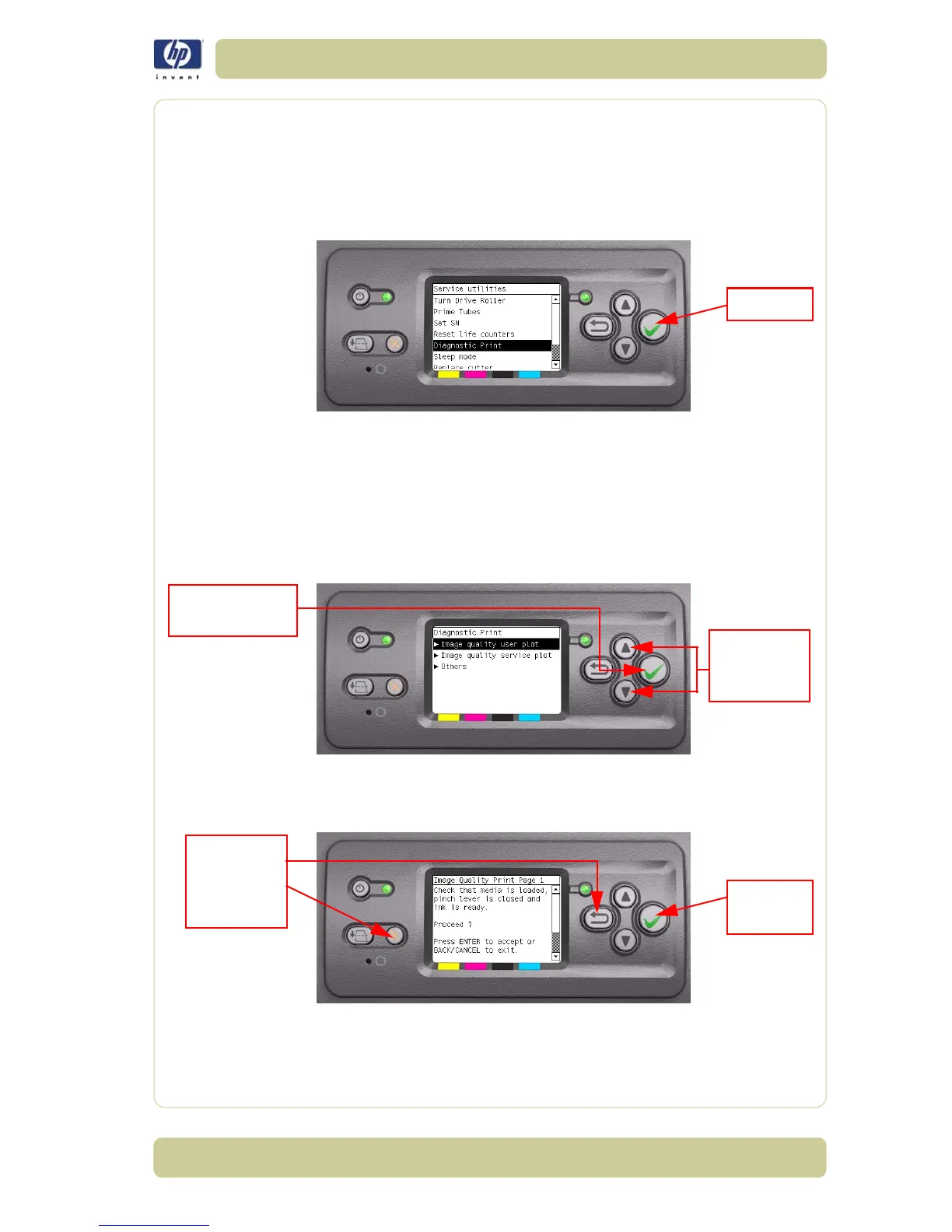 1 In the Service Utilities submenu, scroll to "Diagnostic Print" and press Enter.