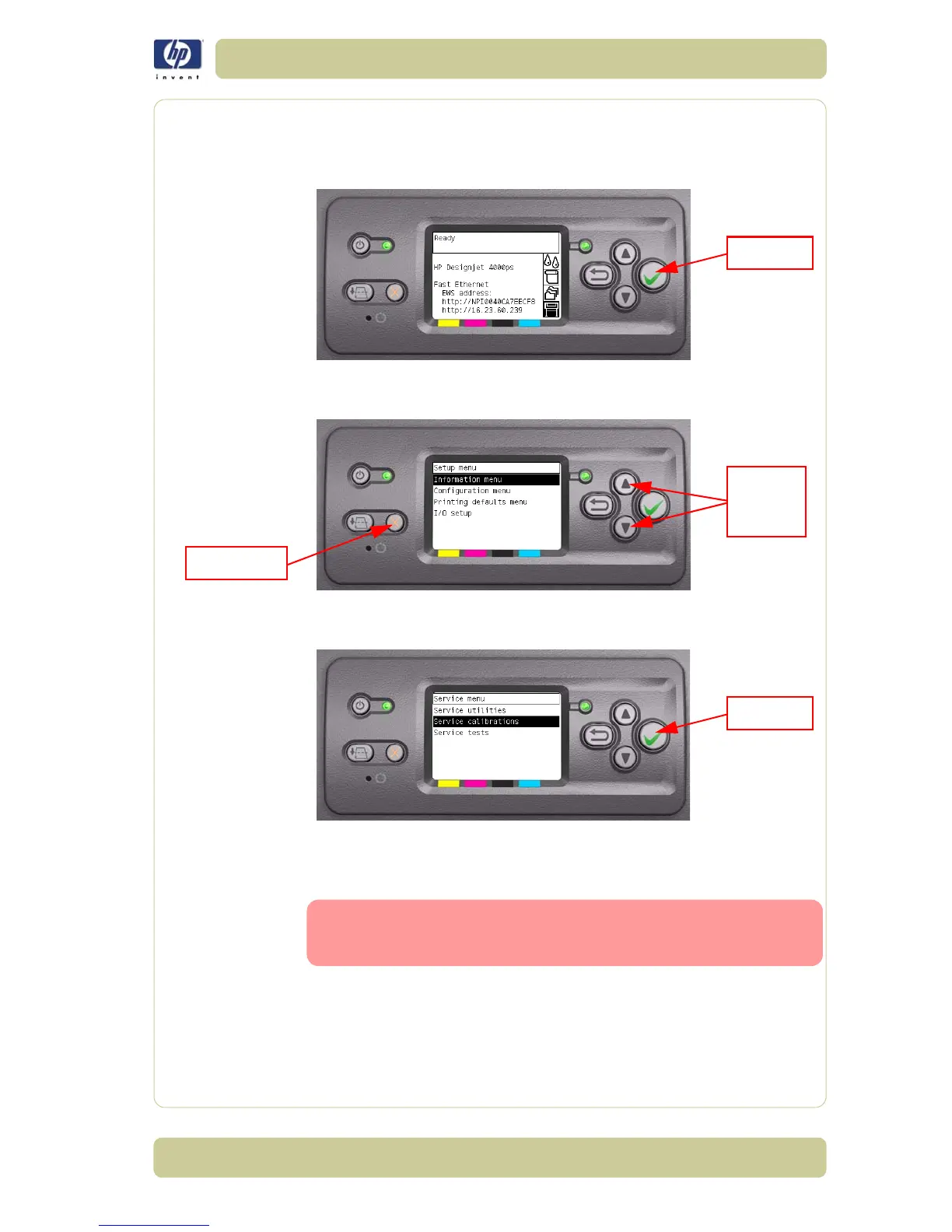 4 Use the Arrow keys to scroll through the "Service Calibrations" selections