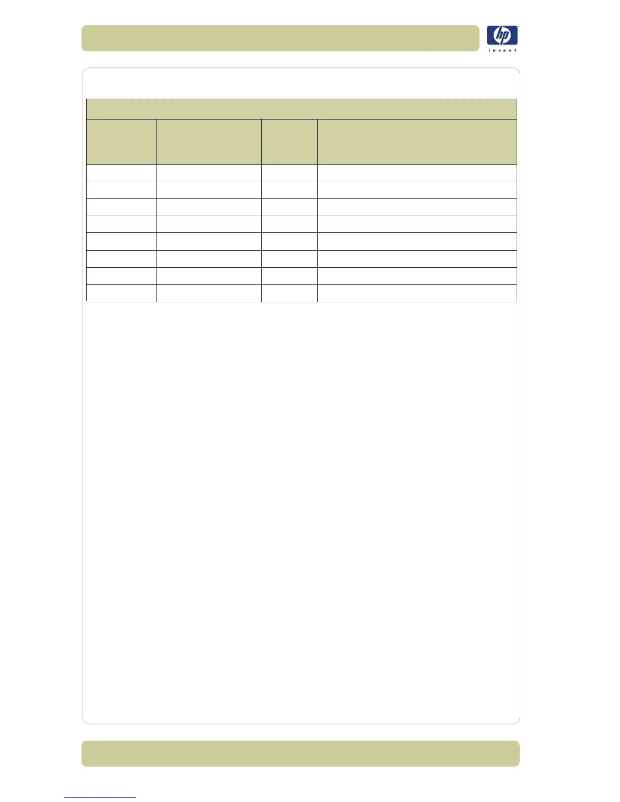 HP Part Number Quantity Description/Comments