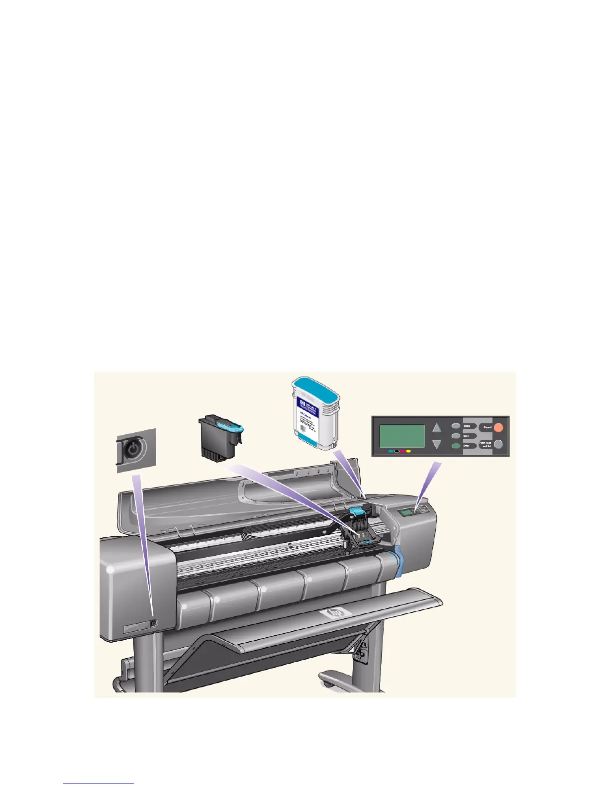 HP Designjet 500 Plus - Front View of Printer; Printer Components Identification