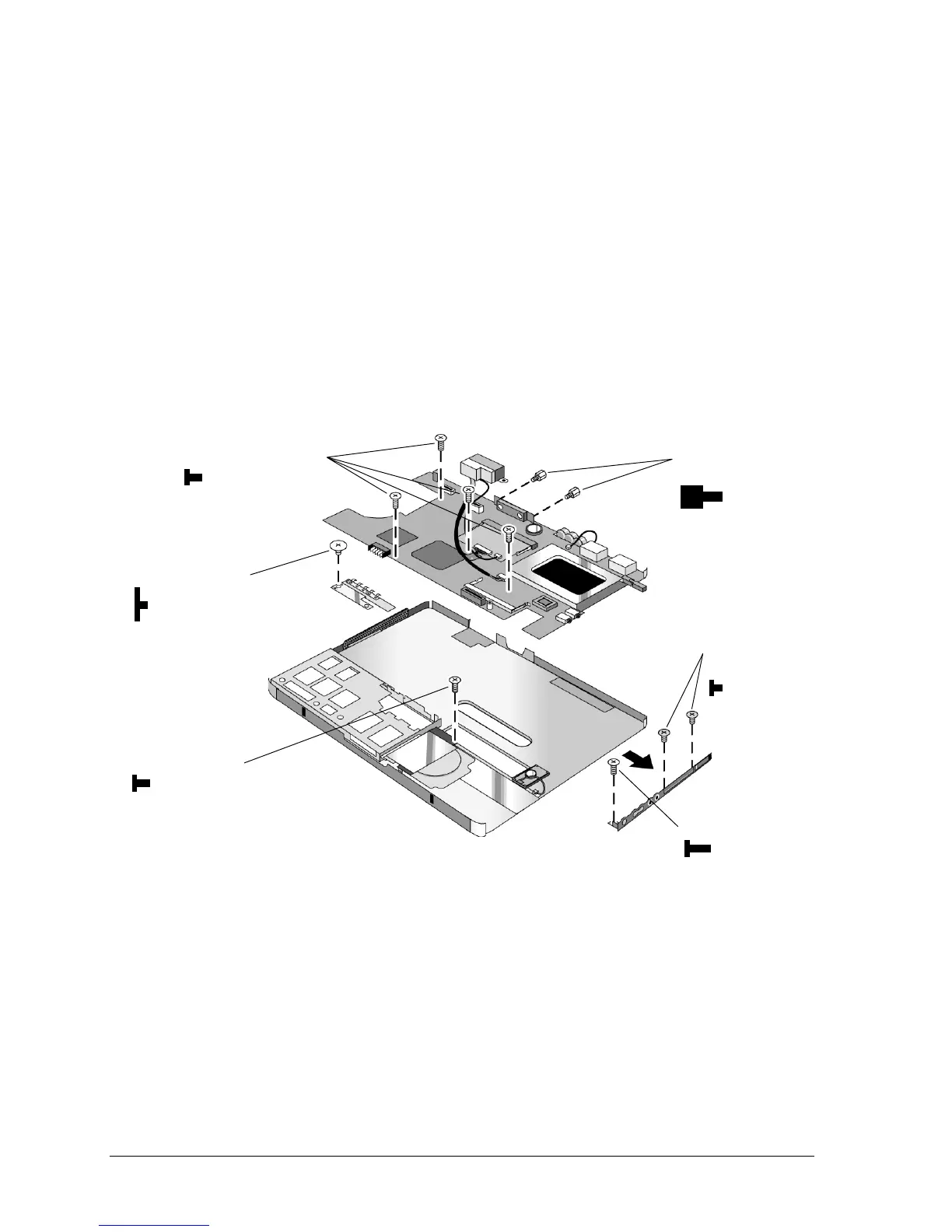 See “Replacing the Motherboard” on page 2-27 or “Replacing the Bottom Case” on page 2-29 for