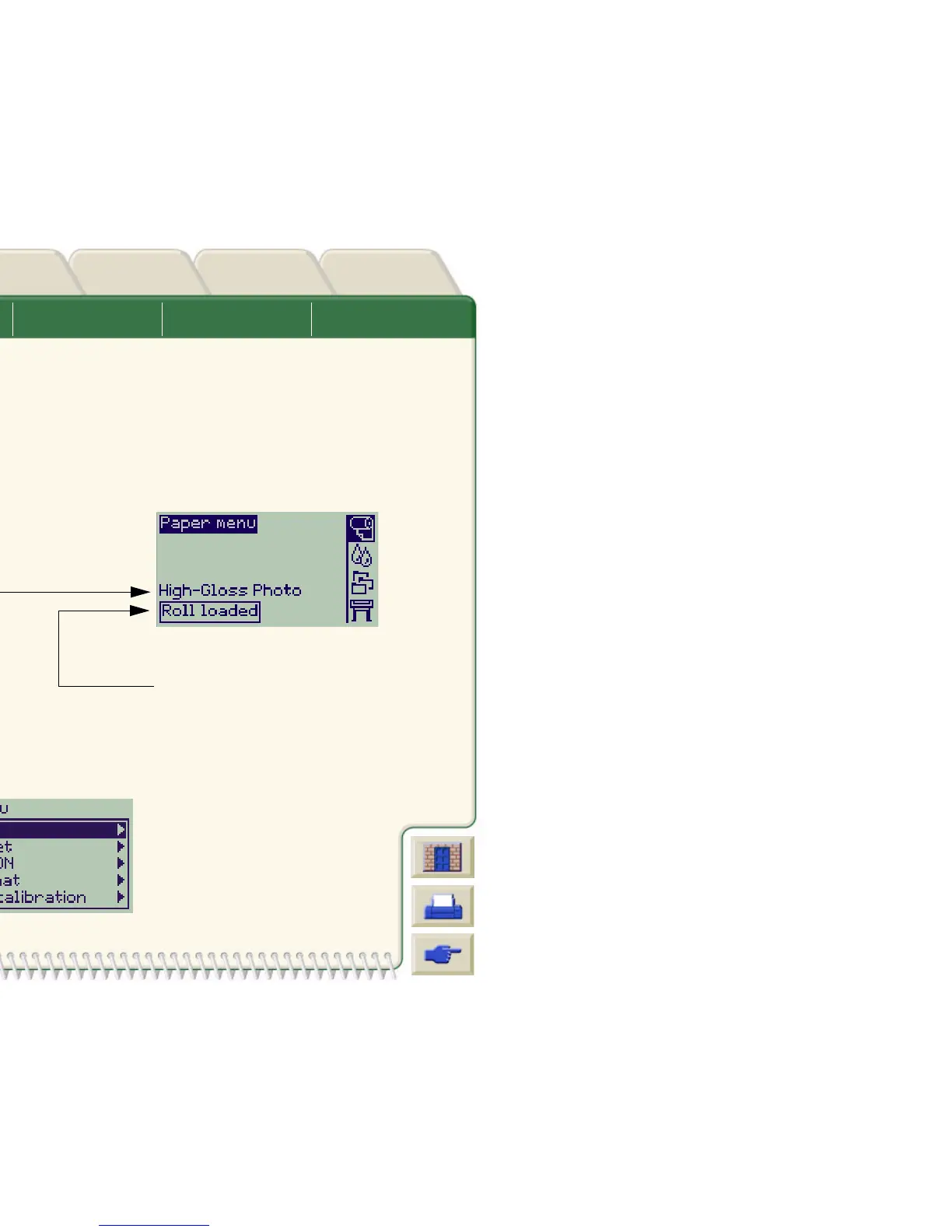 If roll media or sheet media is loaded, the type of media is displayed when you select the Paper menu on the front