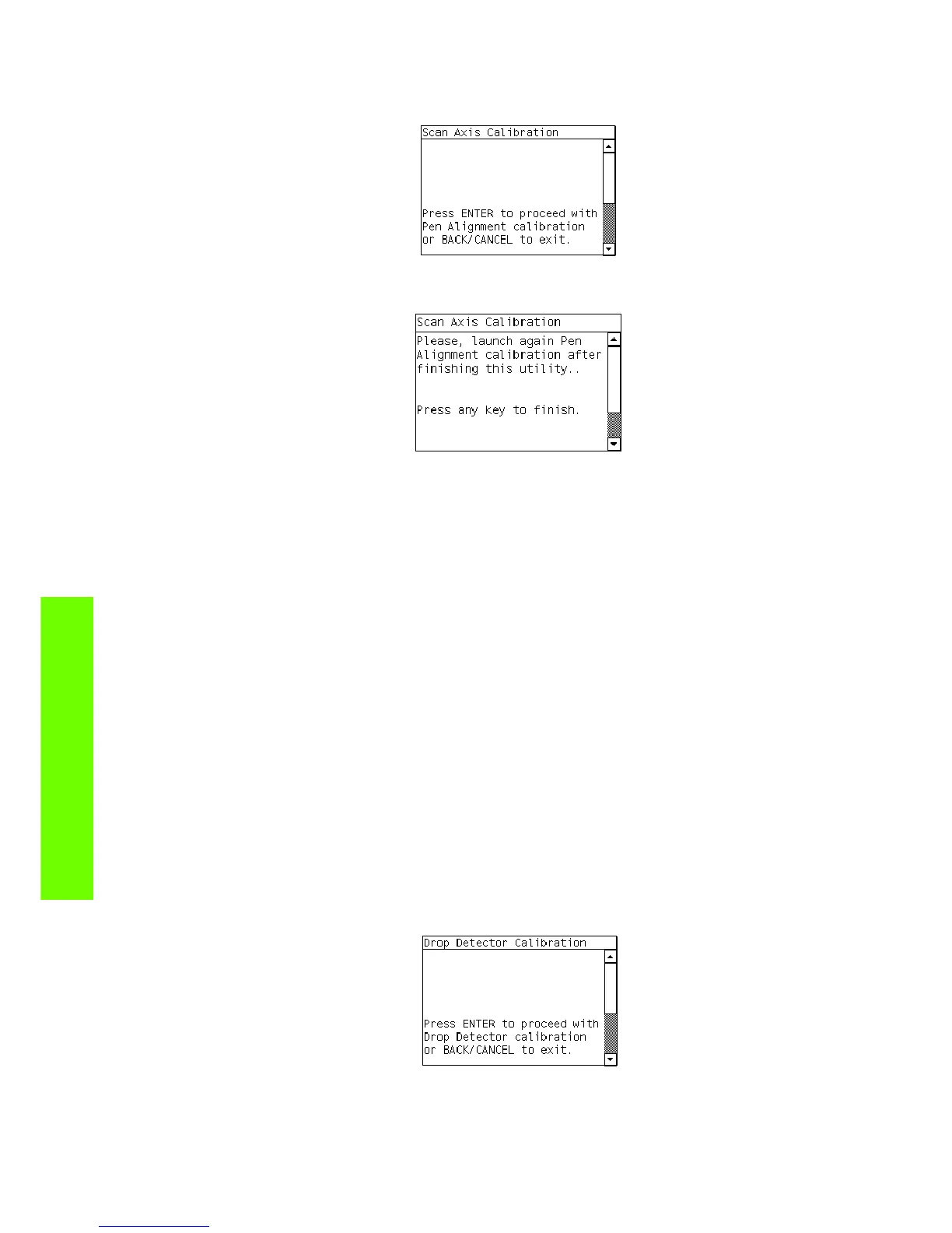 1. Go to Service Menu >5. Service Calibration Menu>5.5 Scan Axis Menu>5.5.2 Drop Detector Cali-