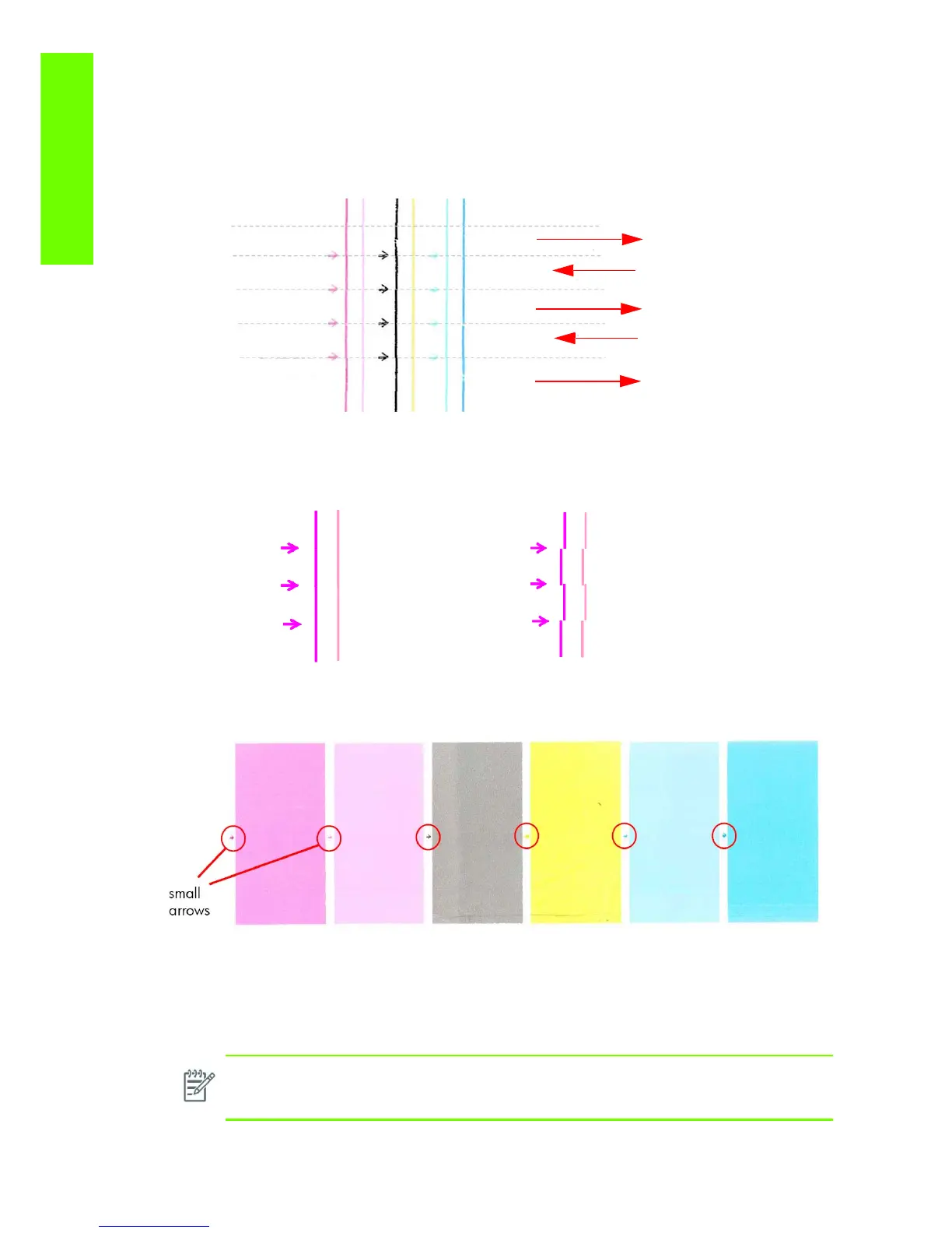 The small arrows point to the place where two different printhead dies meet. No significant light or dark
