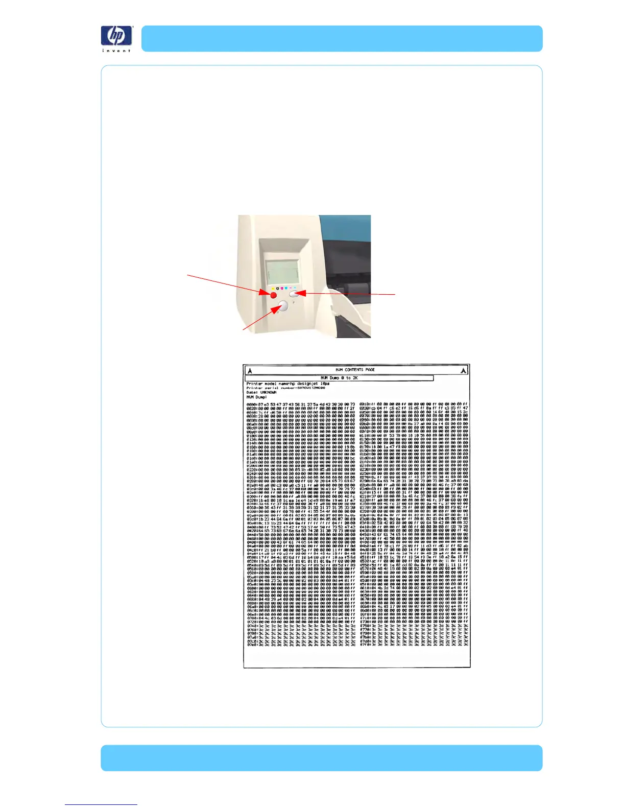 To print the NVM Contents Page, hold the power button down and press the