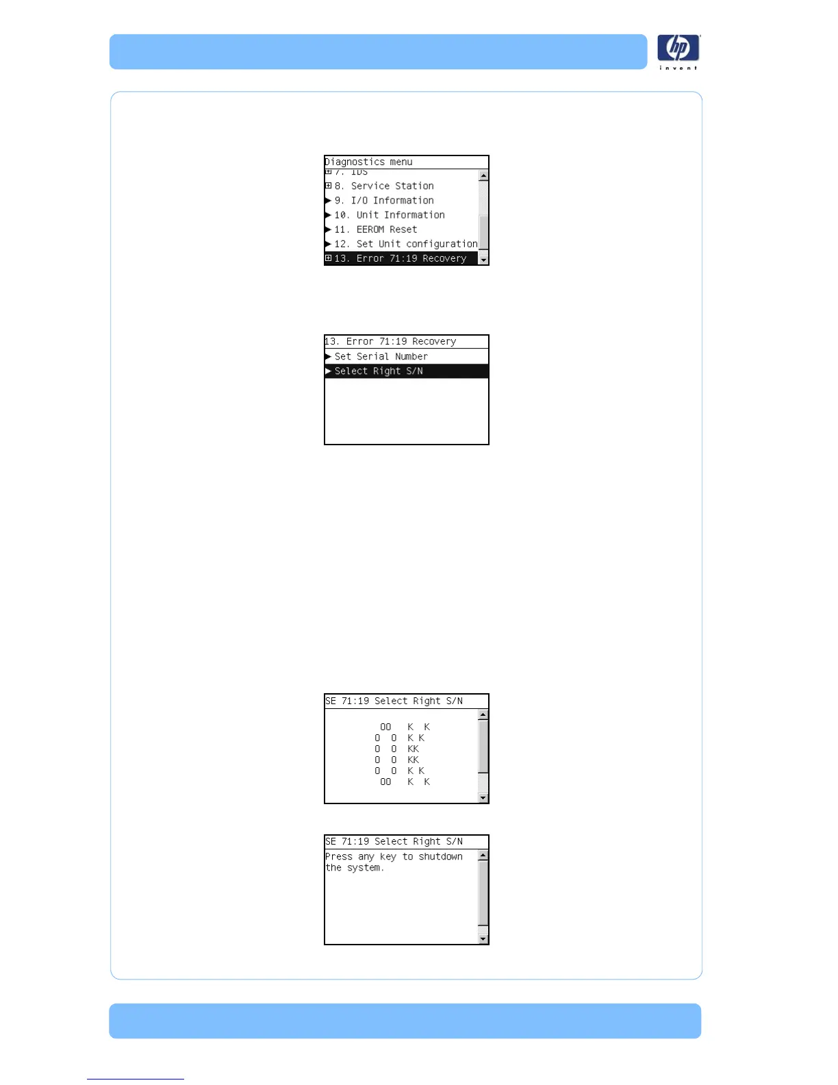 Error 71:19 Recovery submenu, scroll to Select Right S/N