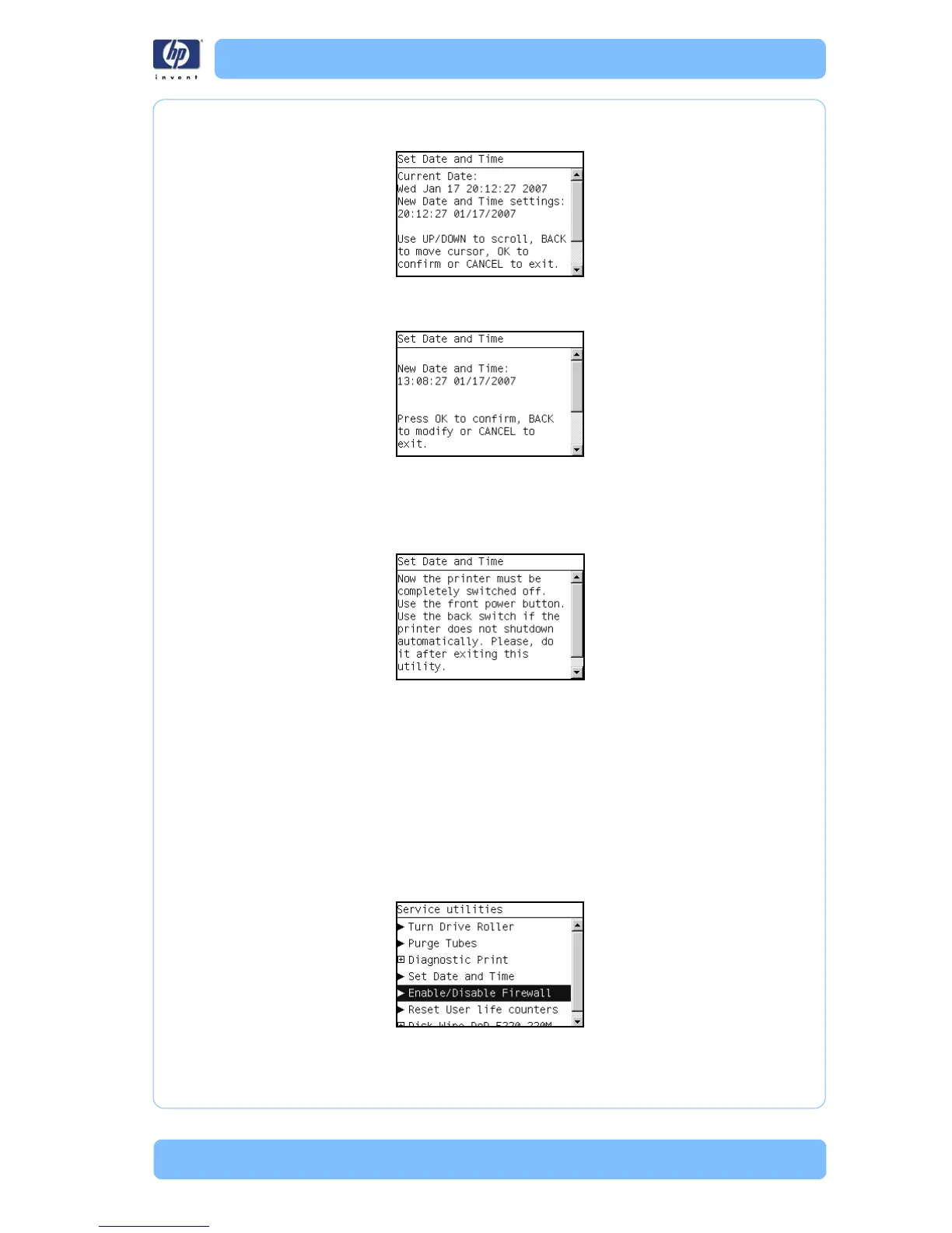 4 Press OK to confirm the new date and time. Press BACK to modify the new