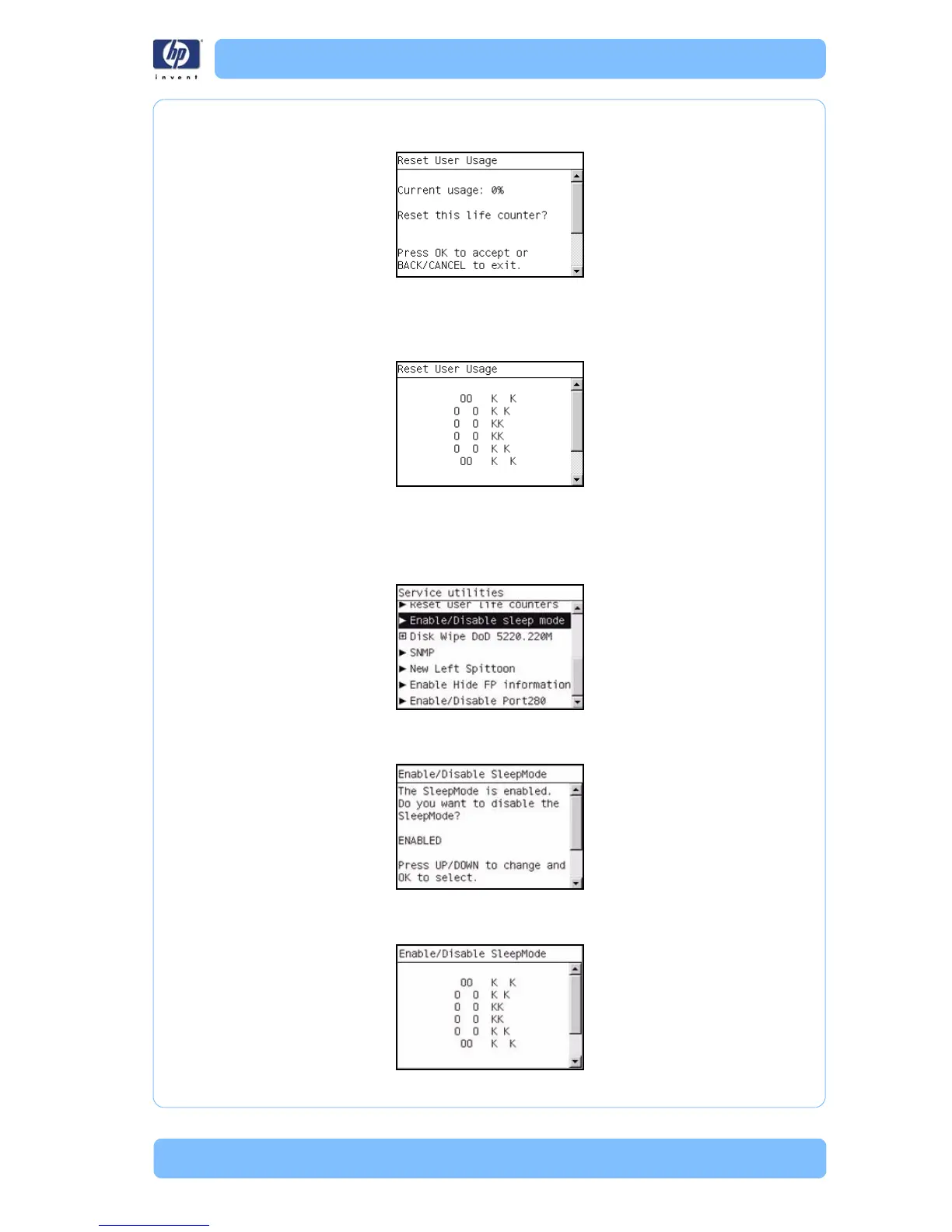 3 Press OK to reset the user life counters. If you are not sure, press BACK/