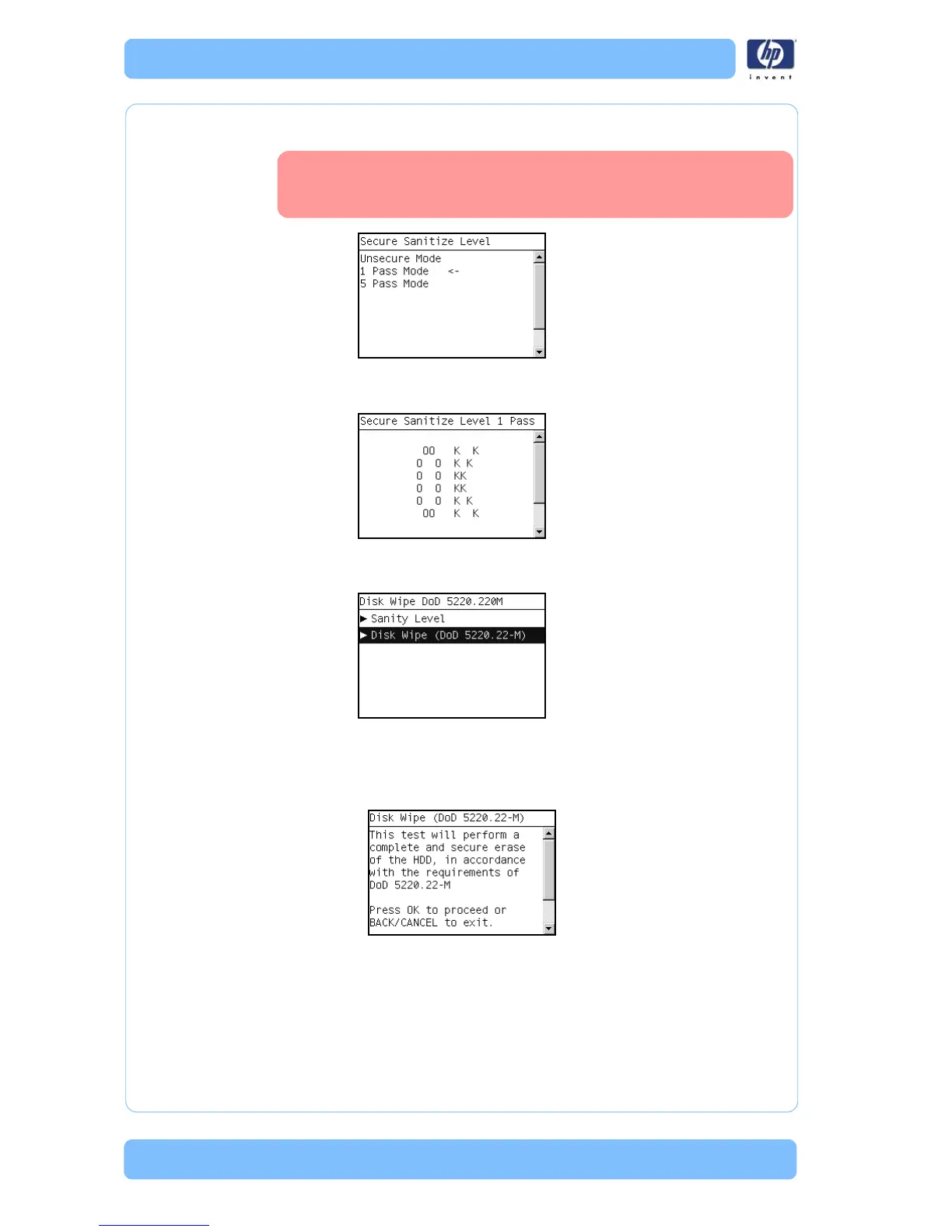 3 In the Secure Sanitize Level submenu, scroll to the required Sanity Level and