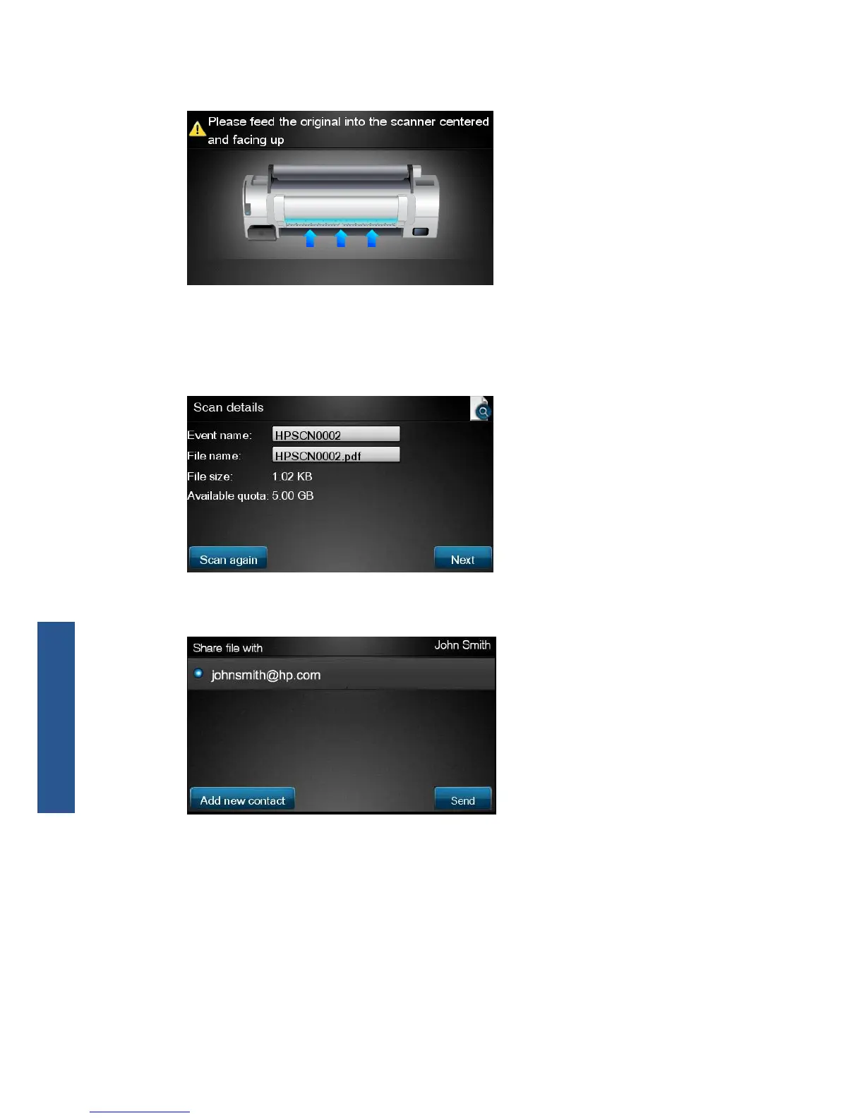 7. Feed the document into the scanner as shown.