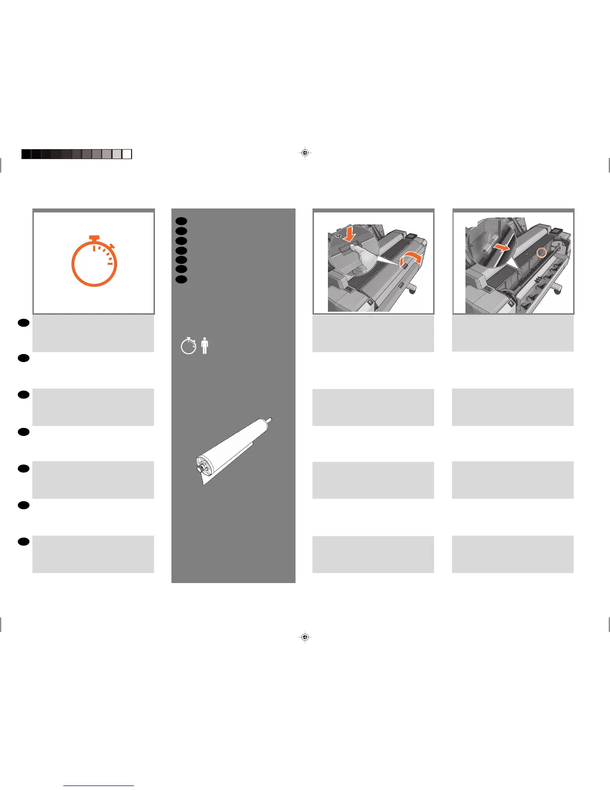 Empurre a trava e abra a tampa do rolo superior frontal.