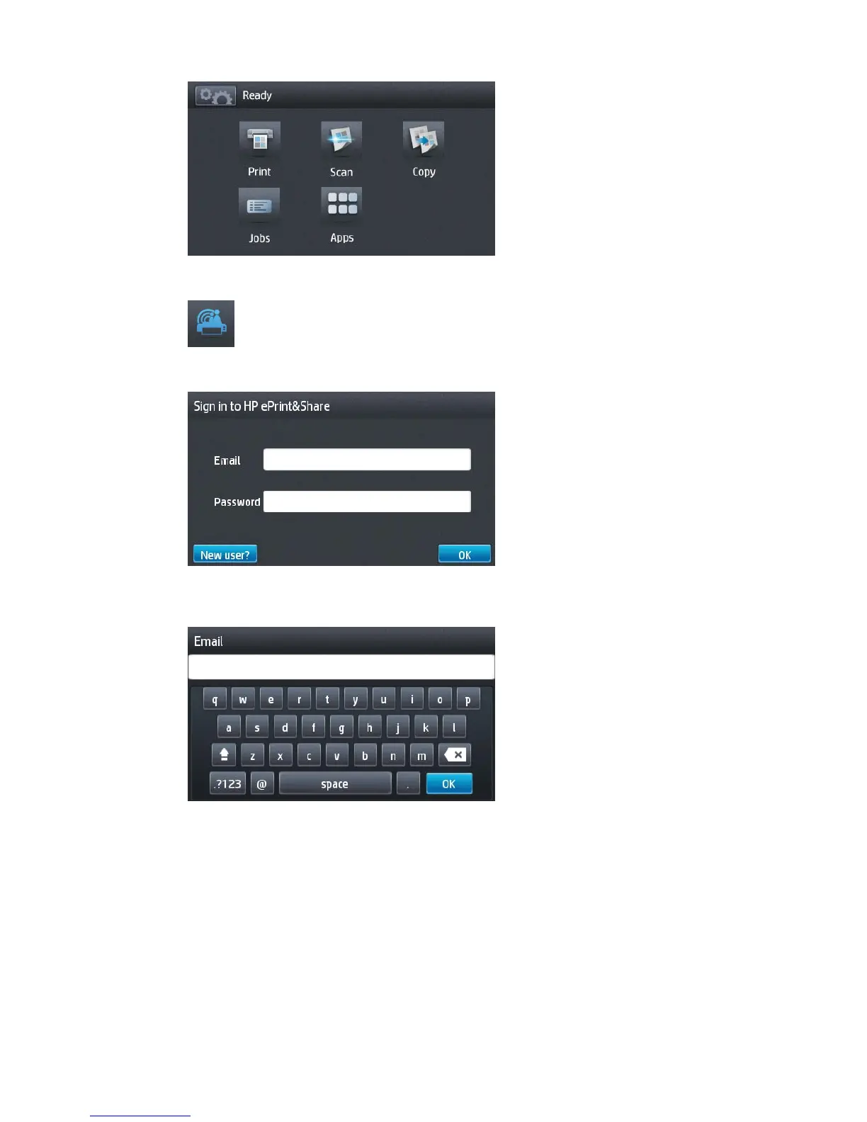 4. Press the white Email address field to enter your email address. A keyboard is displayed so that you can