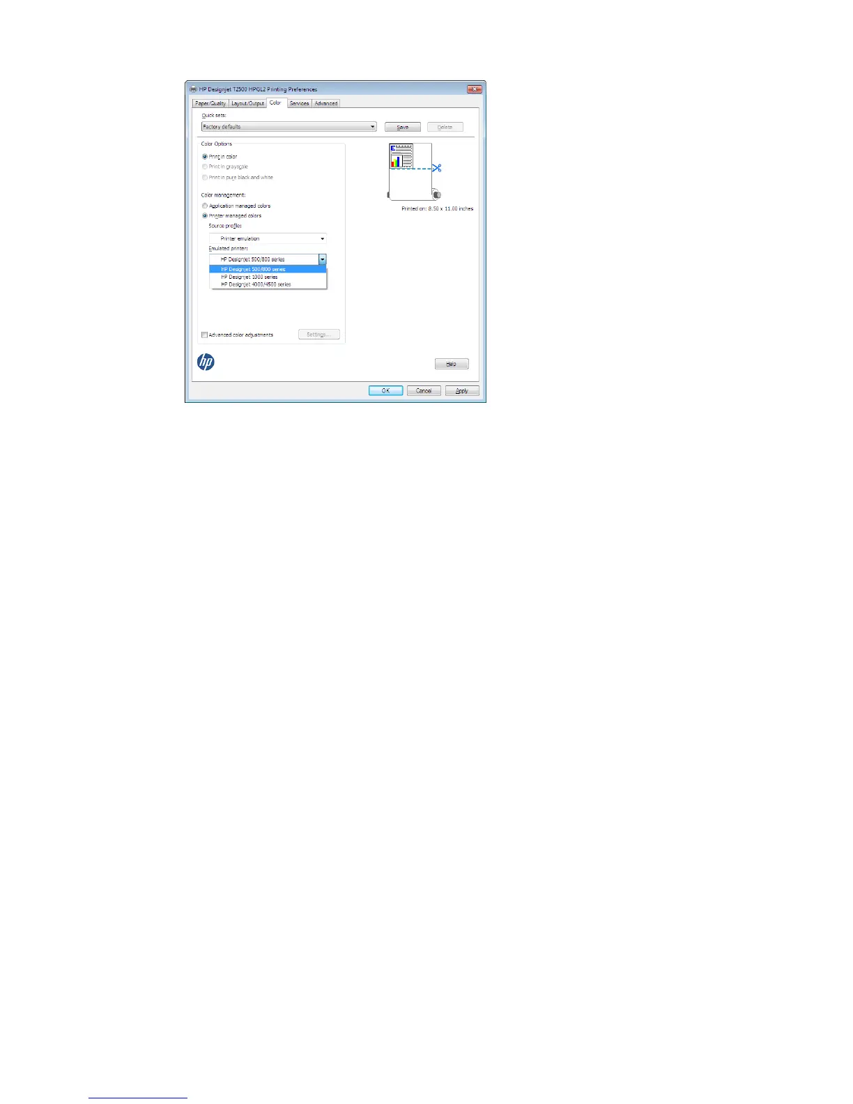 In the Windows driver dialog: select the Color tab, ensure that the Advanced color adjustments box is