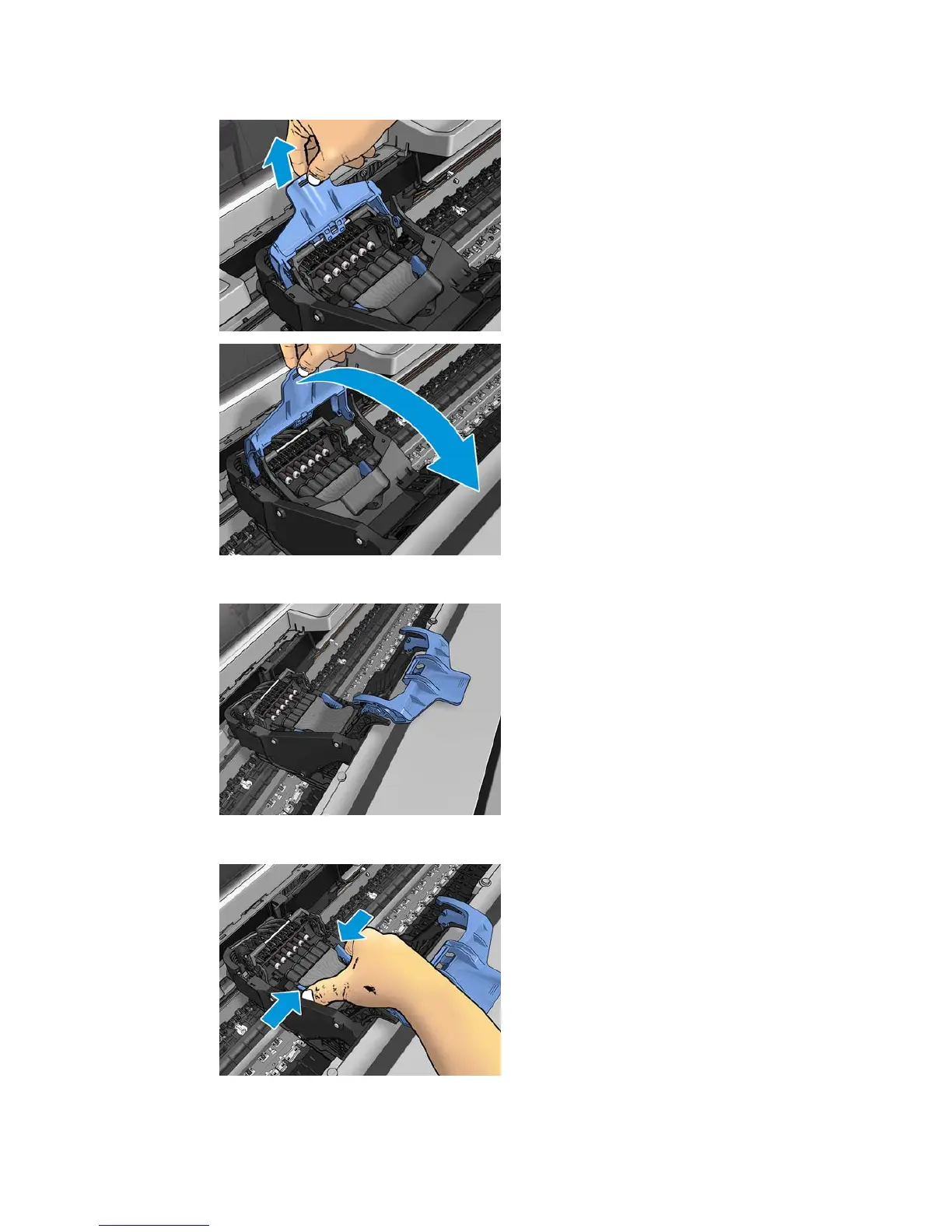6. Pull the blue cover back towards you, raising the black piece to which it is attached.