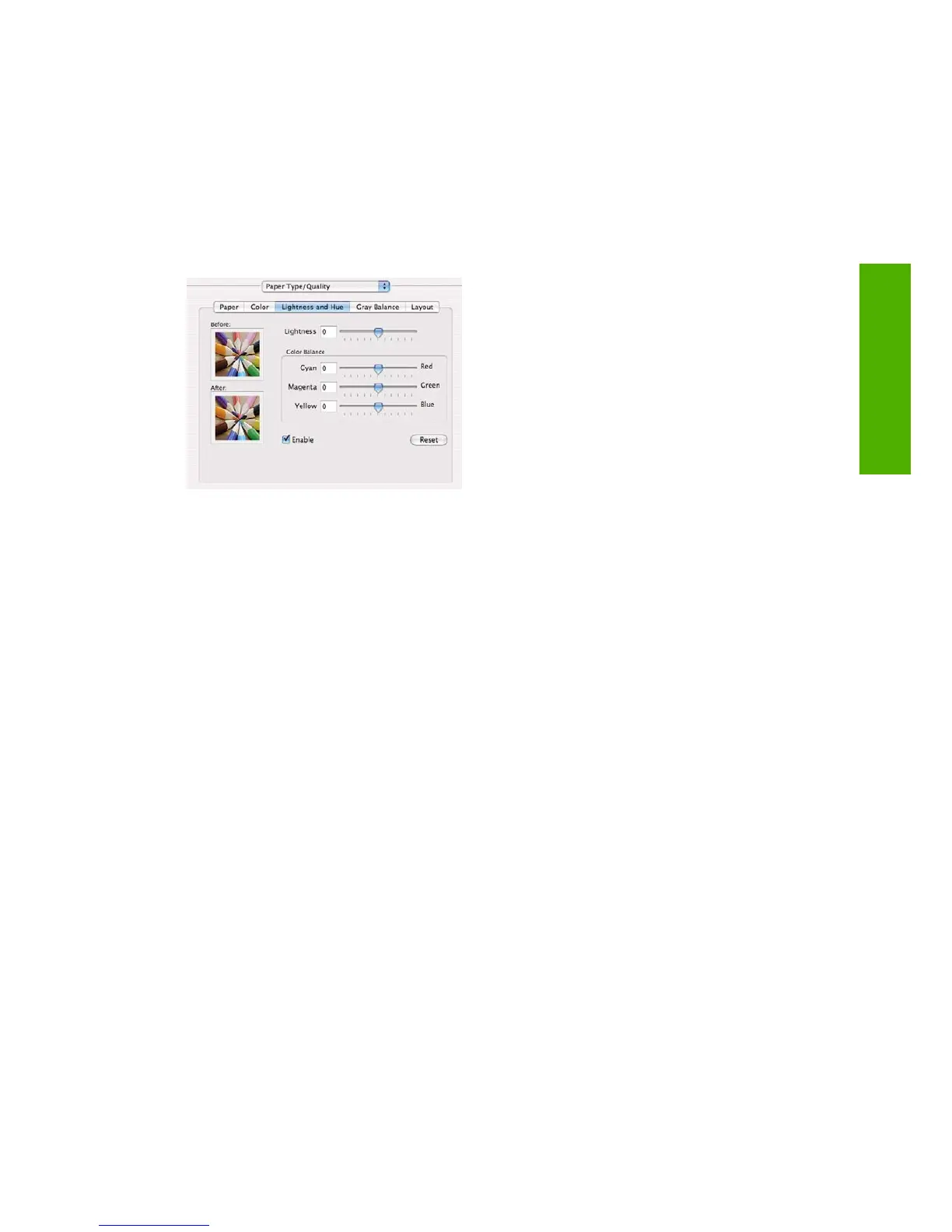 In the Mac OS Print dialog: select the Paper Type/Quality panel, then Lightness and Hue.