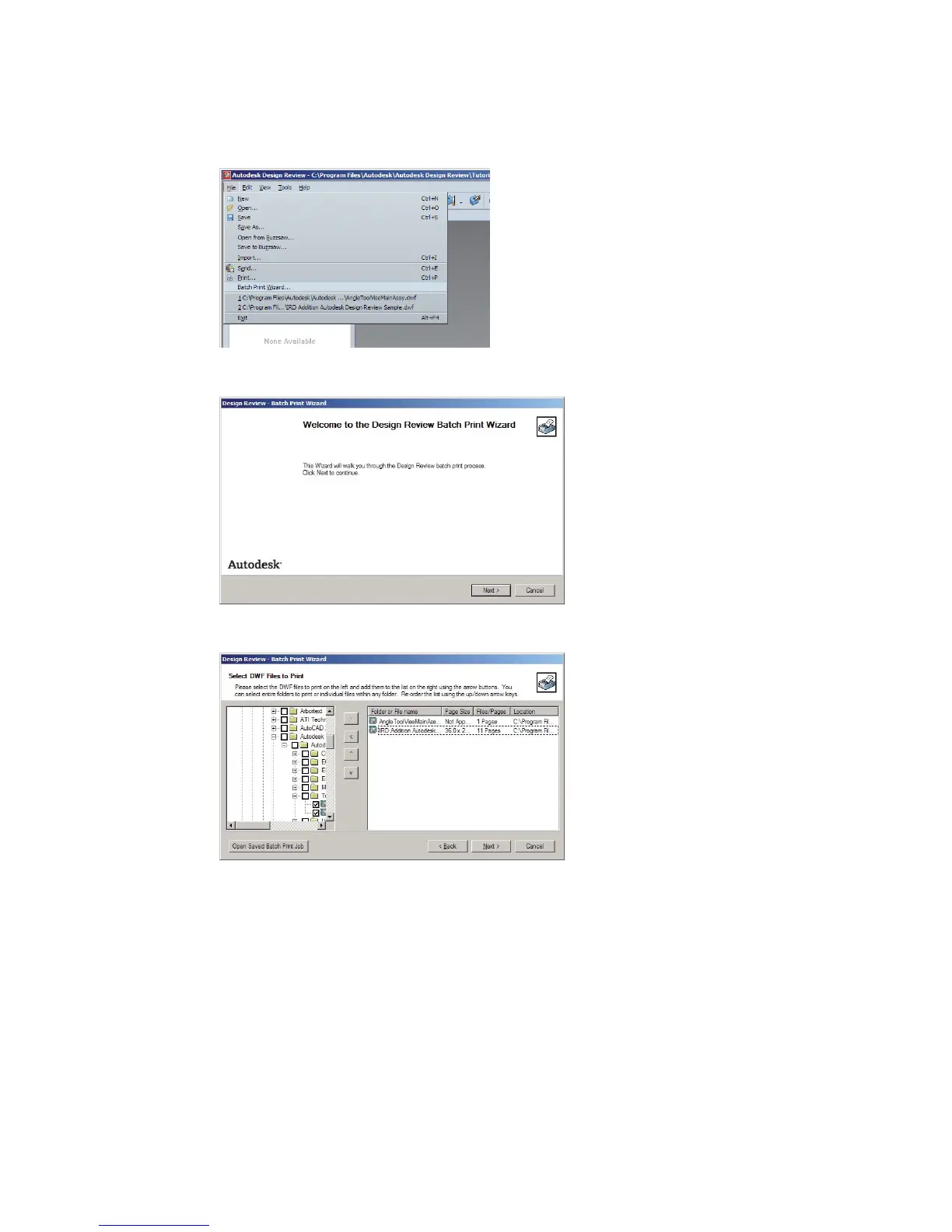 1. Make sure you have installed the Batch Print Wizard. Start Autodesk Design Review and select File >