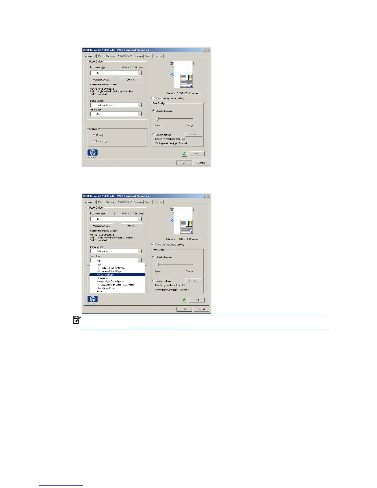 NOTE: If you select neither the paper source nor the paper type, the printer will not print on any