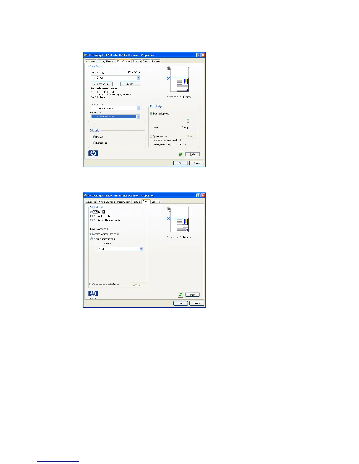 4. Select Print > Properties. In the Document Properties window, select Paper Source, Paper Type and