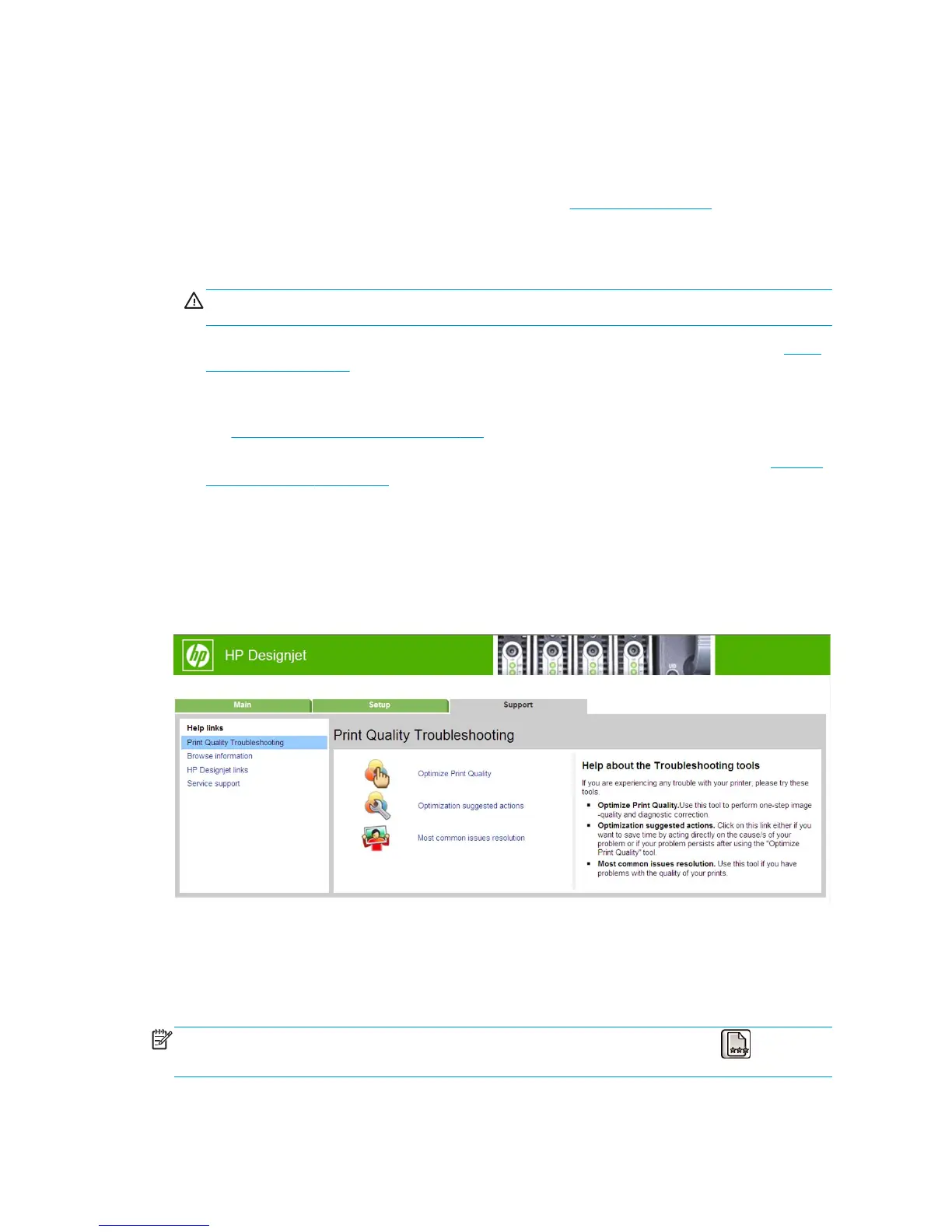 To access the troubleshooting tools in the Embedded Web Server, select the Support tab. The first two tools