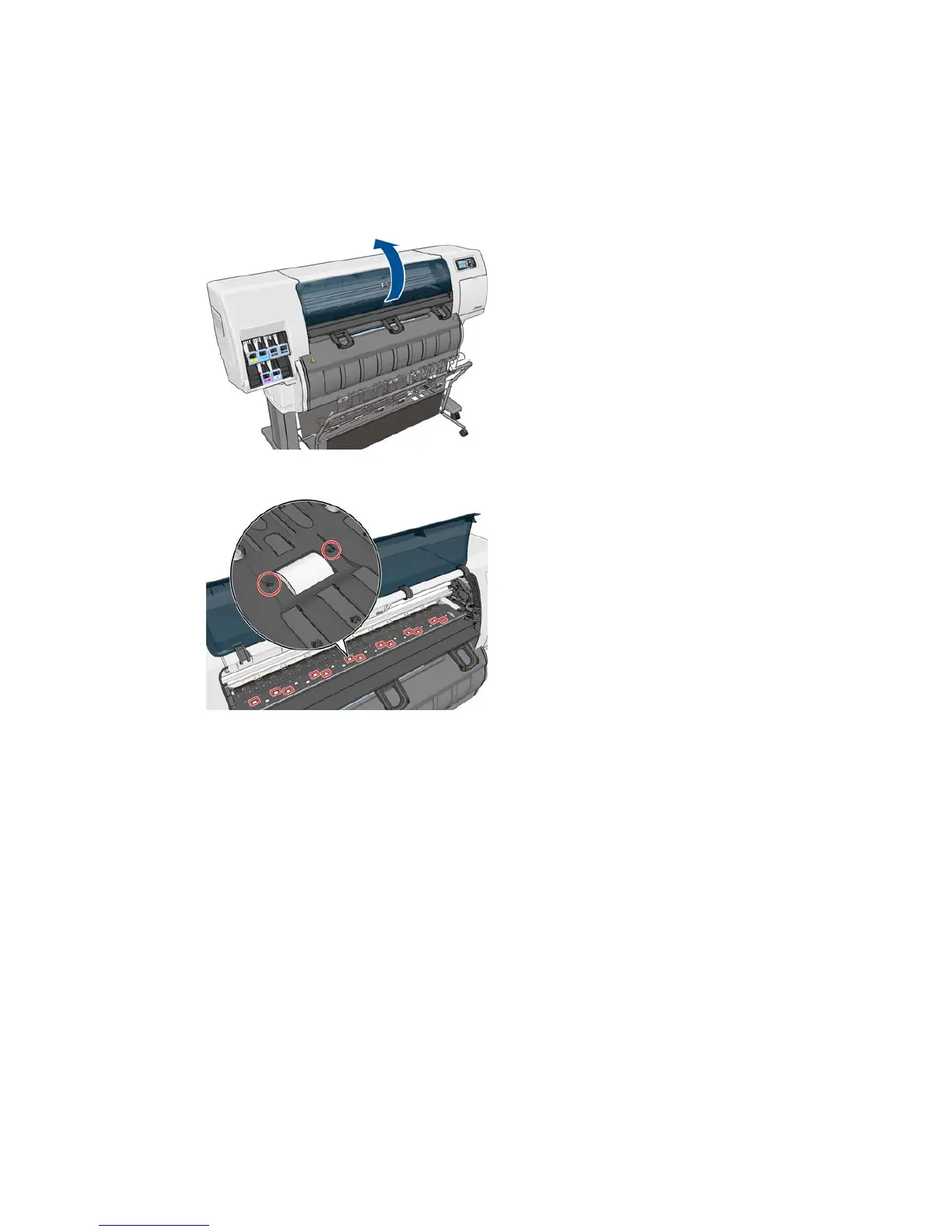 3. Locate the small holes in the platen near some of the rollers.