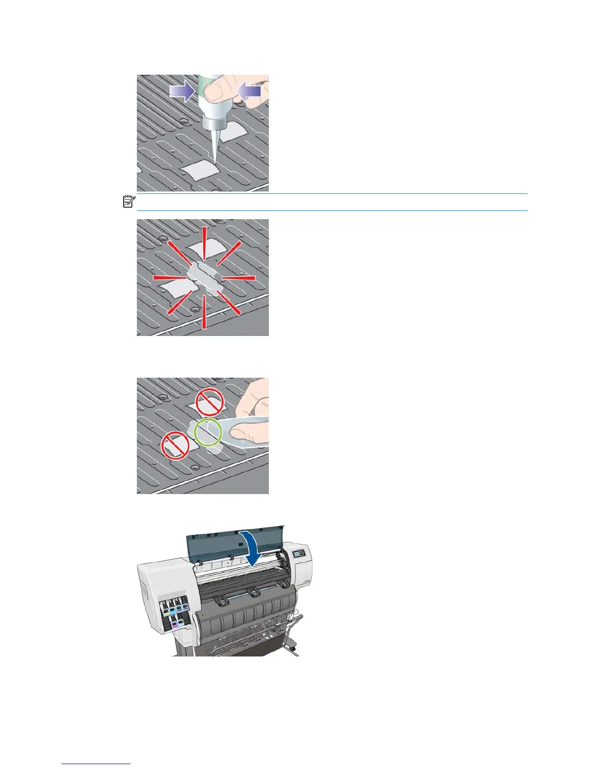 5. If oil spills onto the platen, wipe the platen clean by using the cloth that was supplied with the
