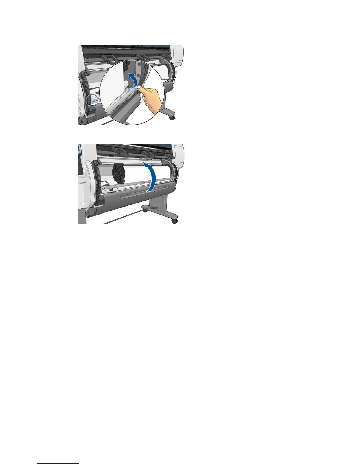 16. Close the paper feed brake. Check that the paper edge is still in the blue zone.