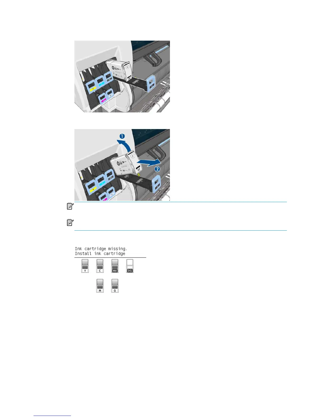 6. The front-panel display identifies the missing ink cartridge.