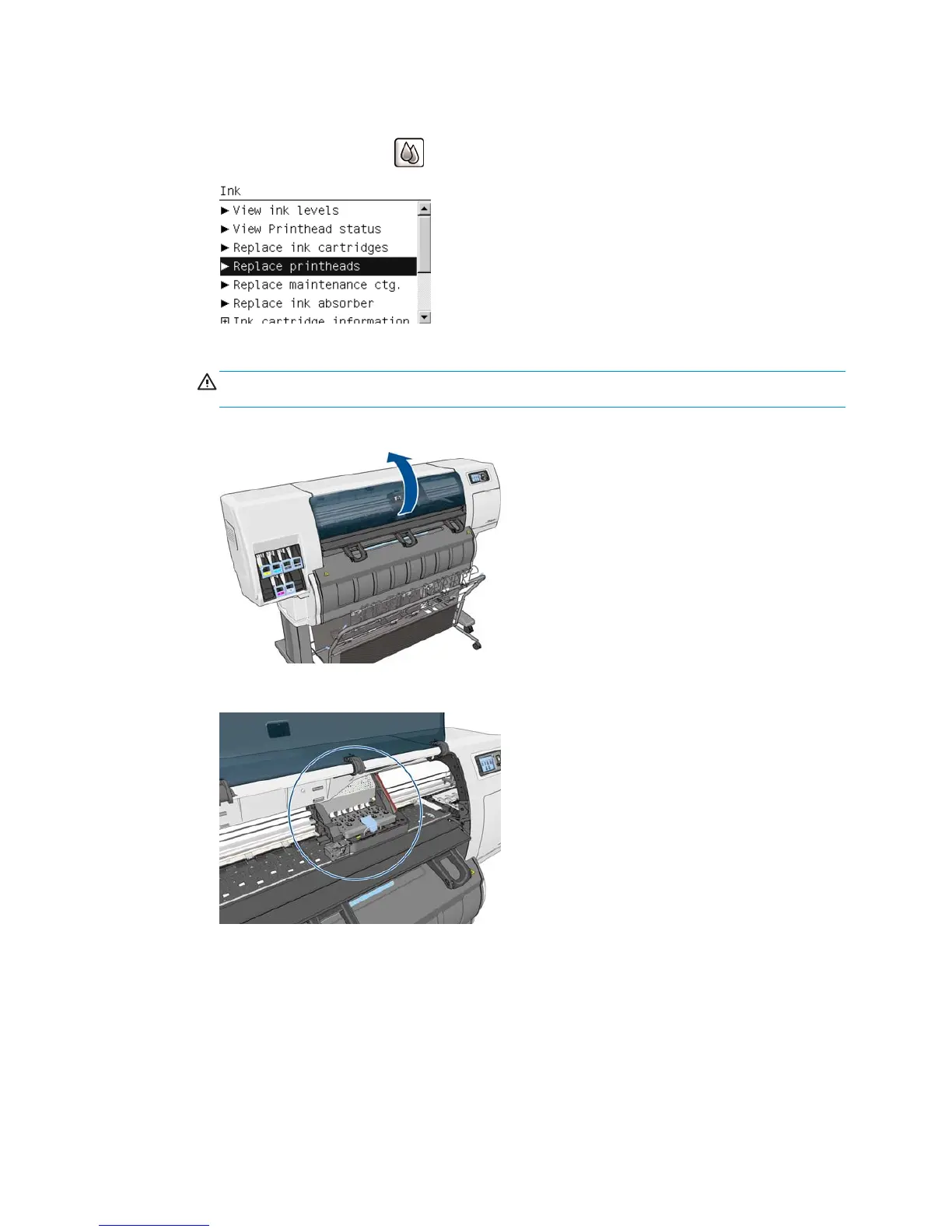 3. When the carriage has stopped moving, the front panel prompts you to open the printer window.