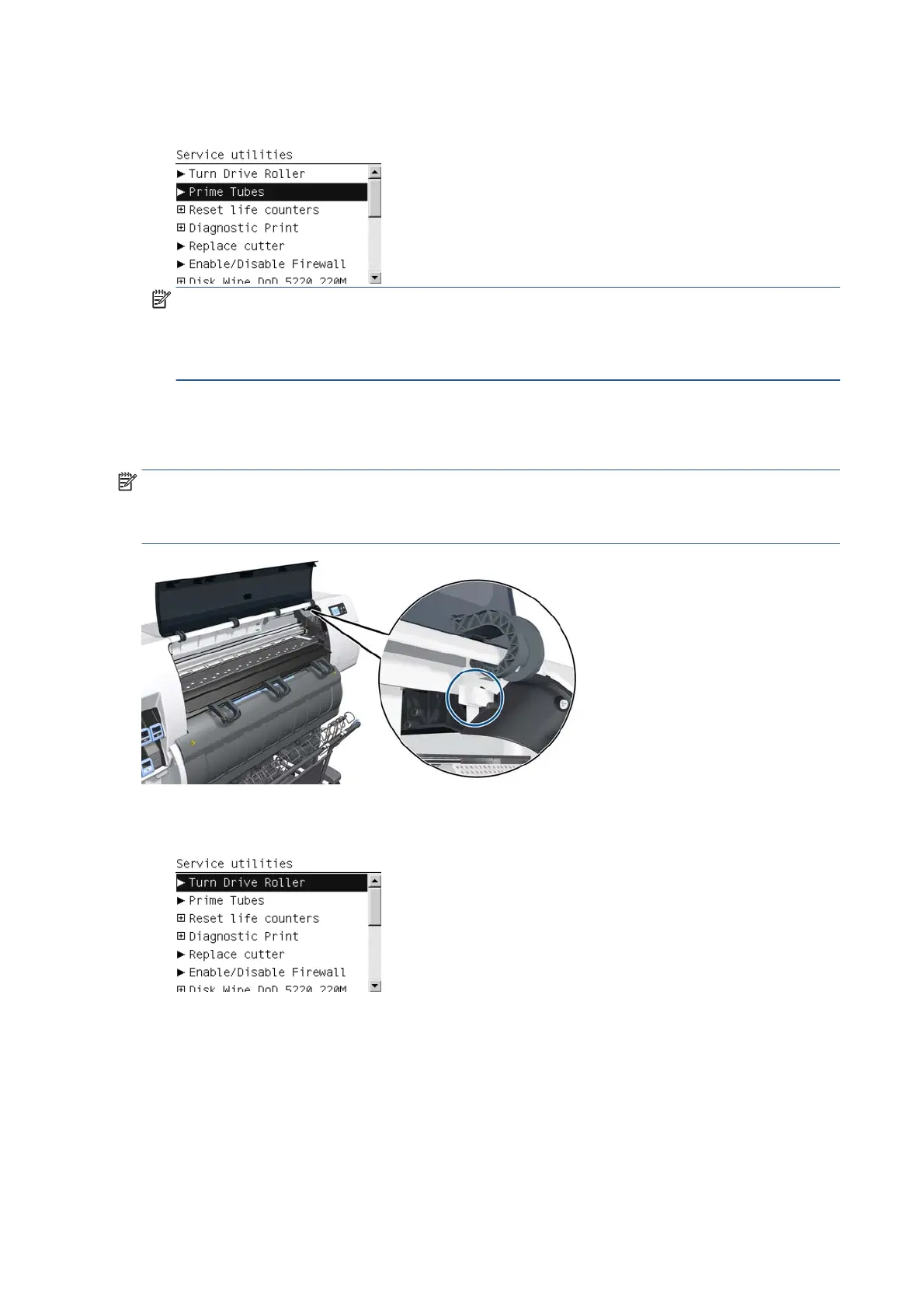 1. In the Service Utilities submenu, scroll to Turn Drive Roller and press OK.