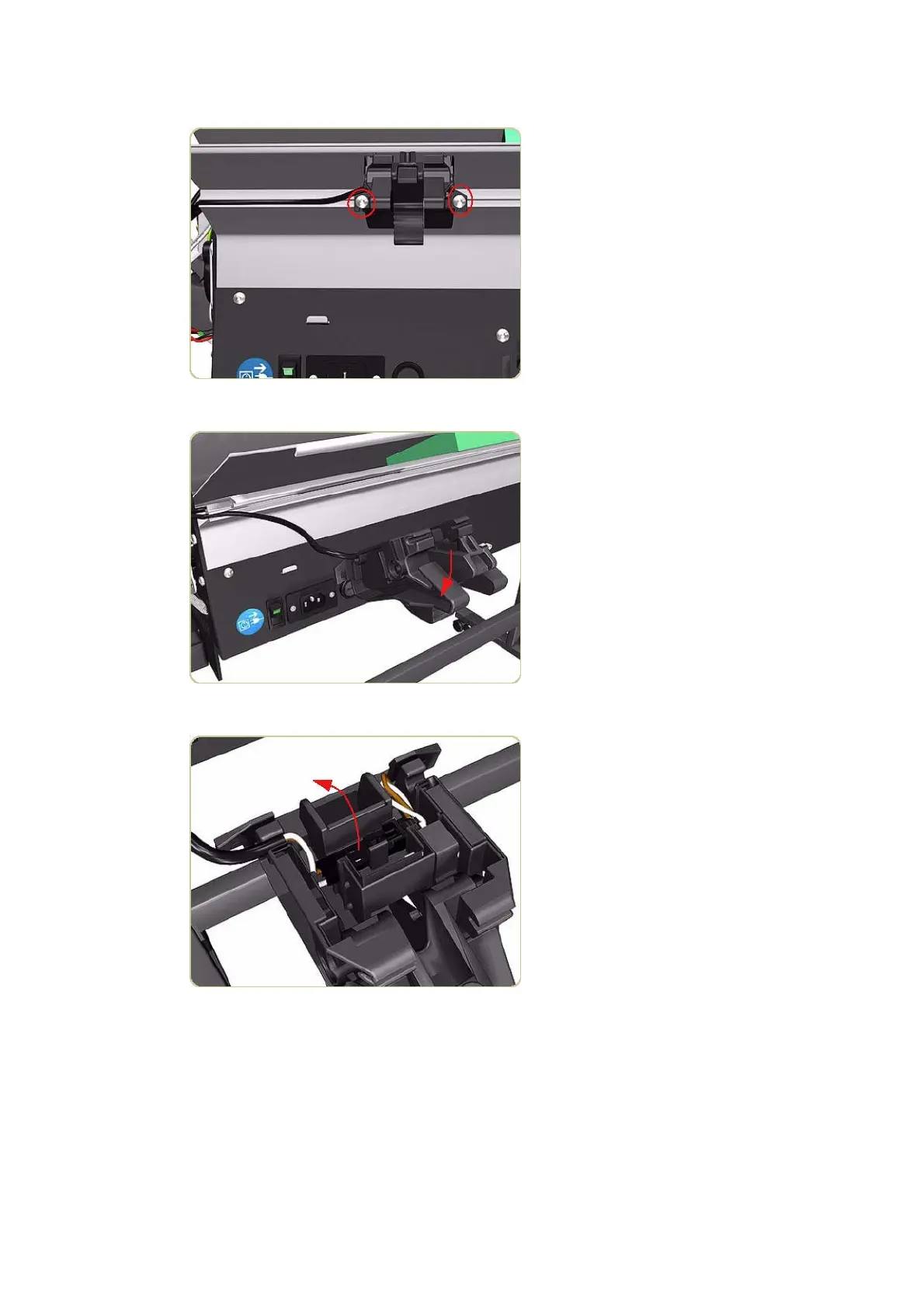 3. Remove two screws that secure each side of the two Printer Interlocks.