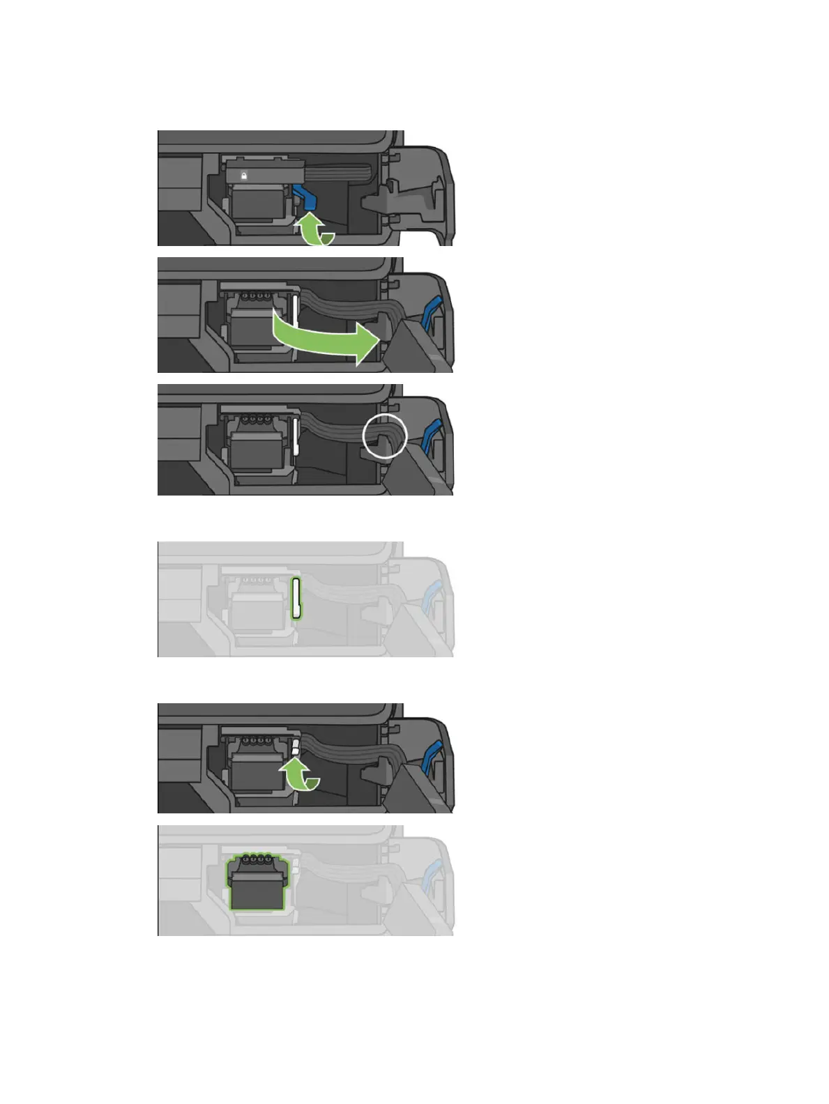 6. Raise the blue lever to release the tube connector and store the tubes connector on the tubes connector