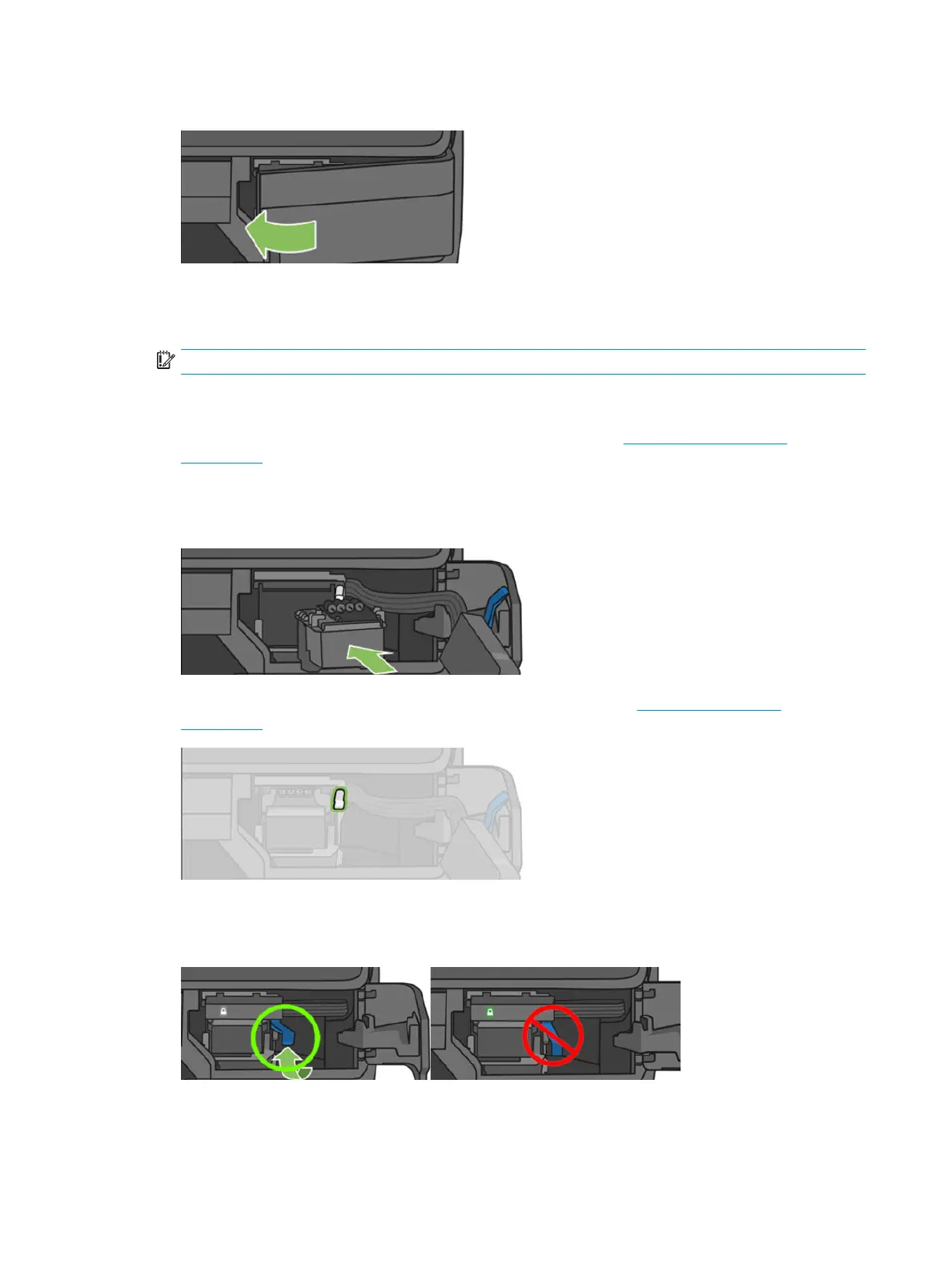 4. Check that you have correctly latched the printhead (white latch), see Replace the printhead