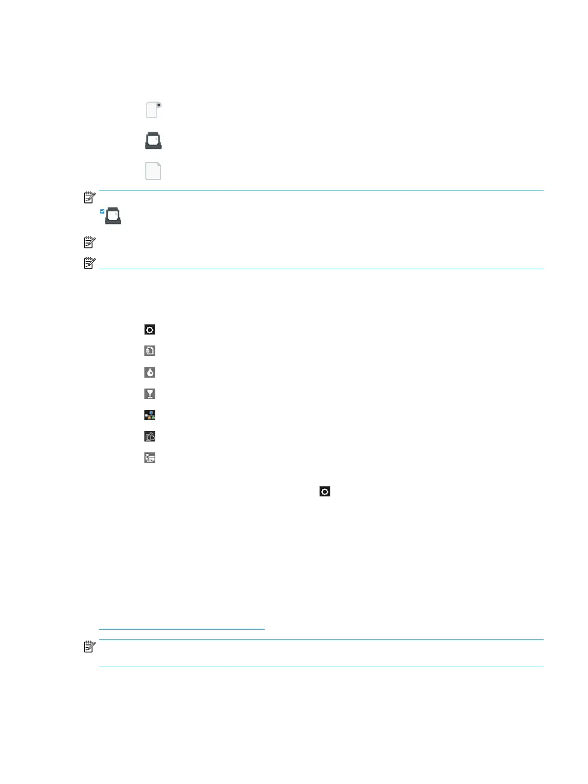 NOTE: The white tick in a blue box indicates the active paper source: in this example, the multi-sheet tray: